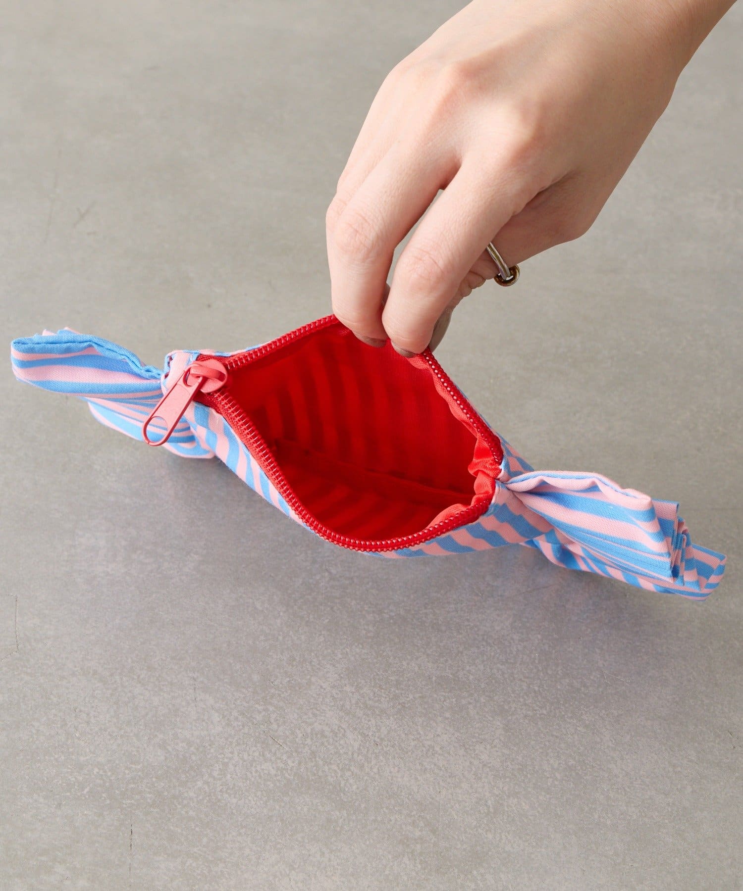 リップなどの小さなメイク道具や、イヤホンやコードなどのガジェット類、カードや小銭などを入れて財布として使うなど、使い勝手のいいサイズ感。