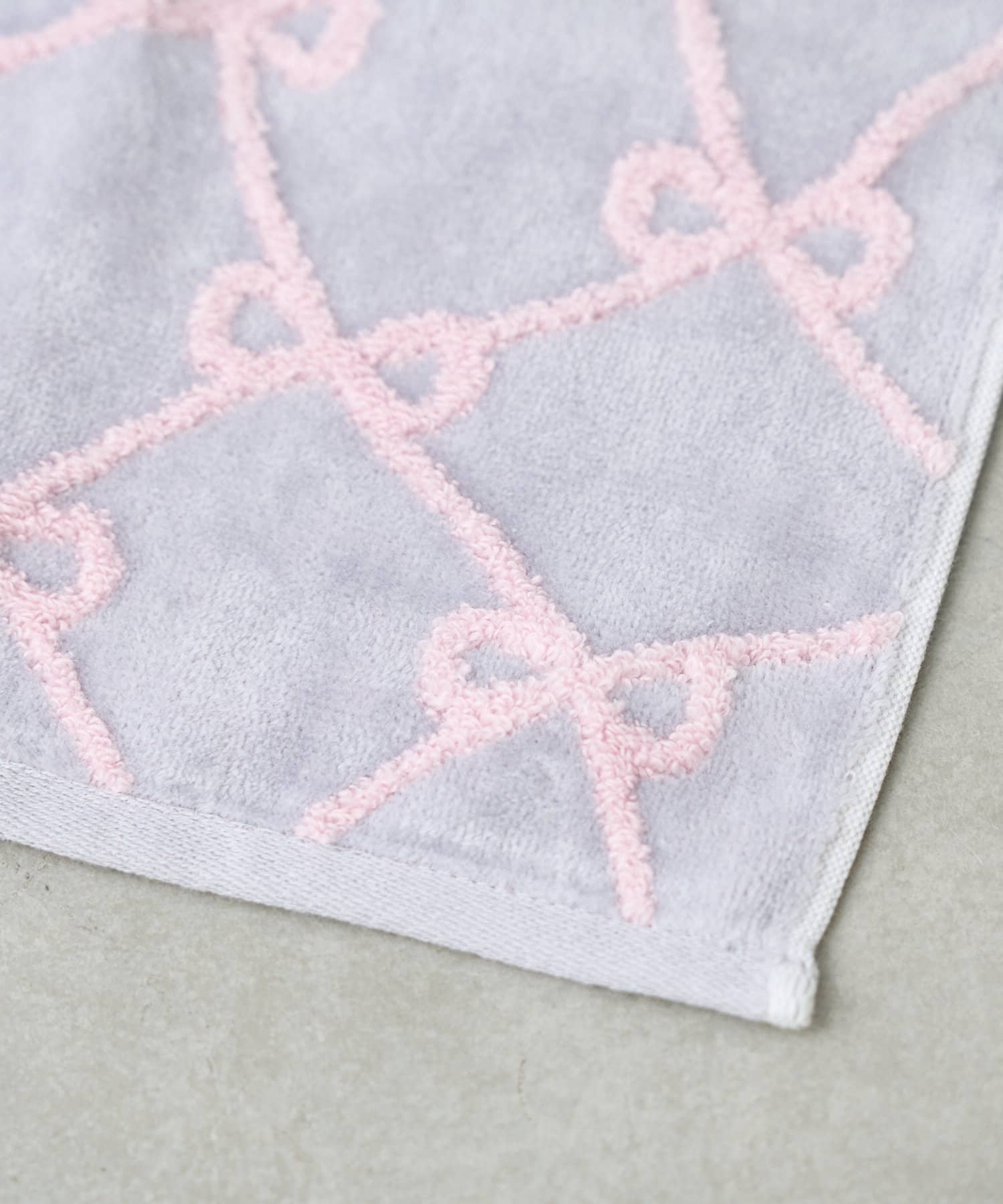トレンドのリボン柄をジャガードで表現したタオルハンカチ。今治で作られた、ふかふかで肌触りの良いタオルは自分へはもちろんプレゼントにもぴったり。吸水性もあり、デイリーに活躍します。バッグの中に入っていたら気分があがるデザインです。