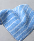 ストライプジャガードのタオルハンカチ。メロー仕上げで軽やかに仕上がりました。