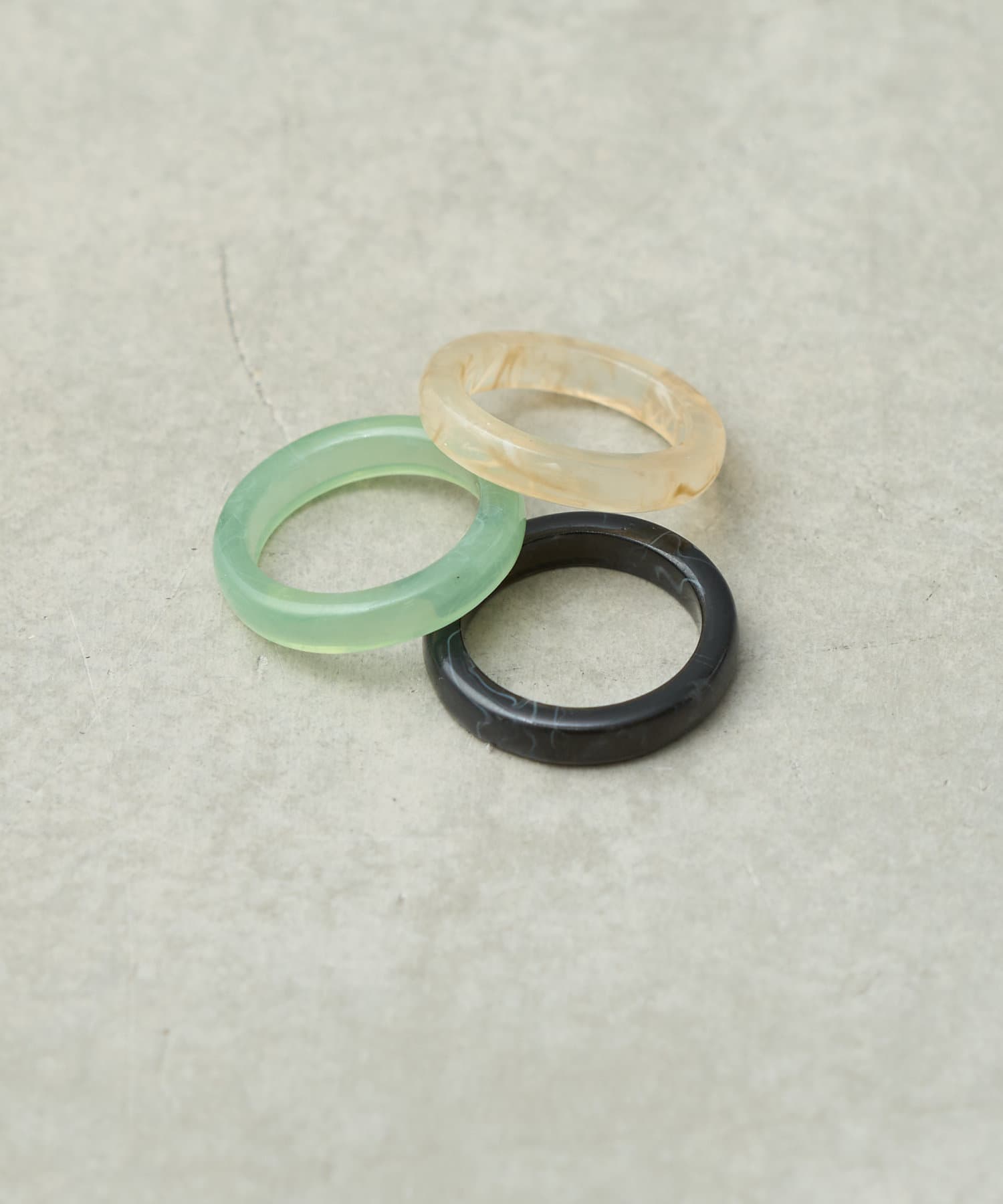 シンプルなカラーとカラーの入ったアクリルリングの3点セット。