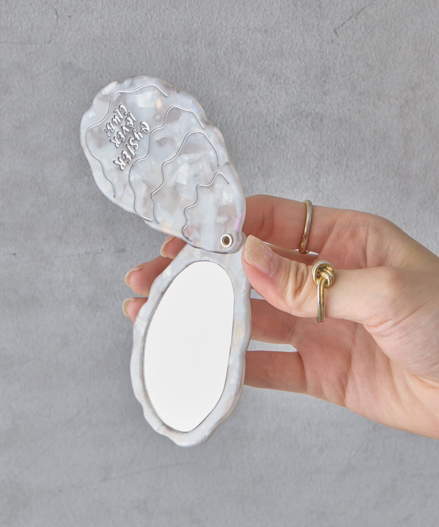 まるで牡蠣がミラーになったかのようなコンパクトミラー。