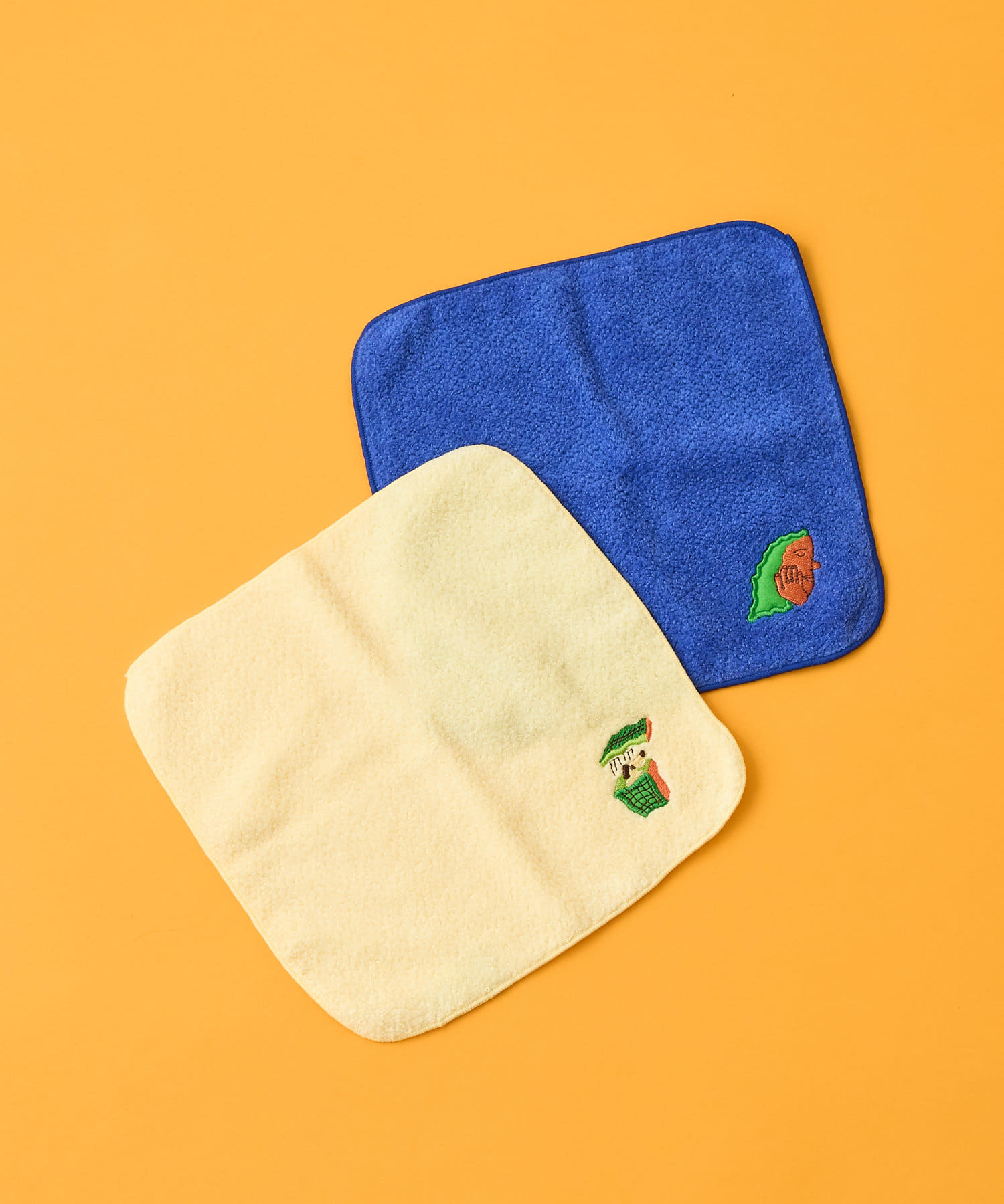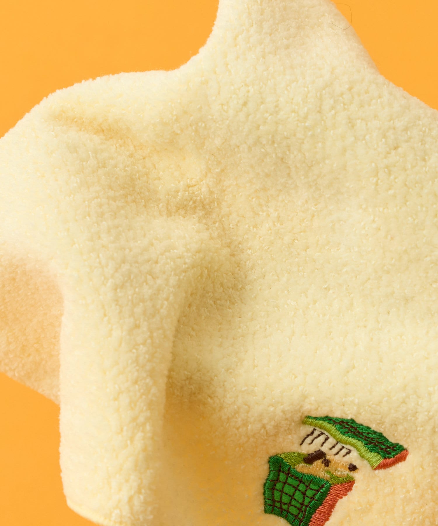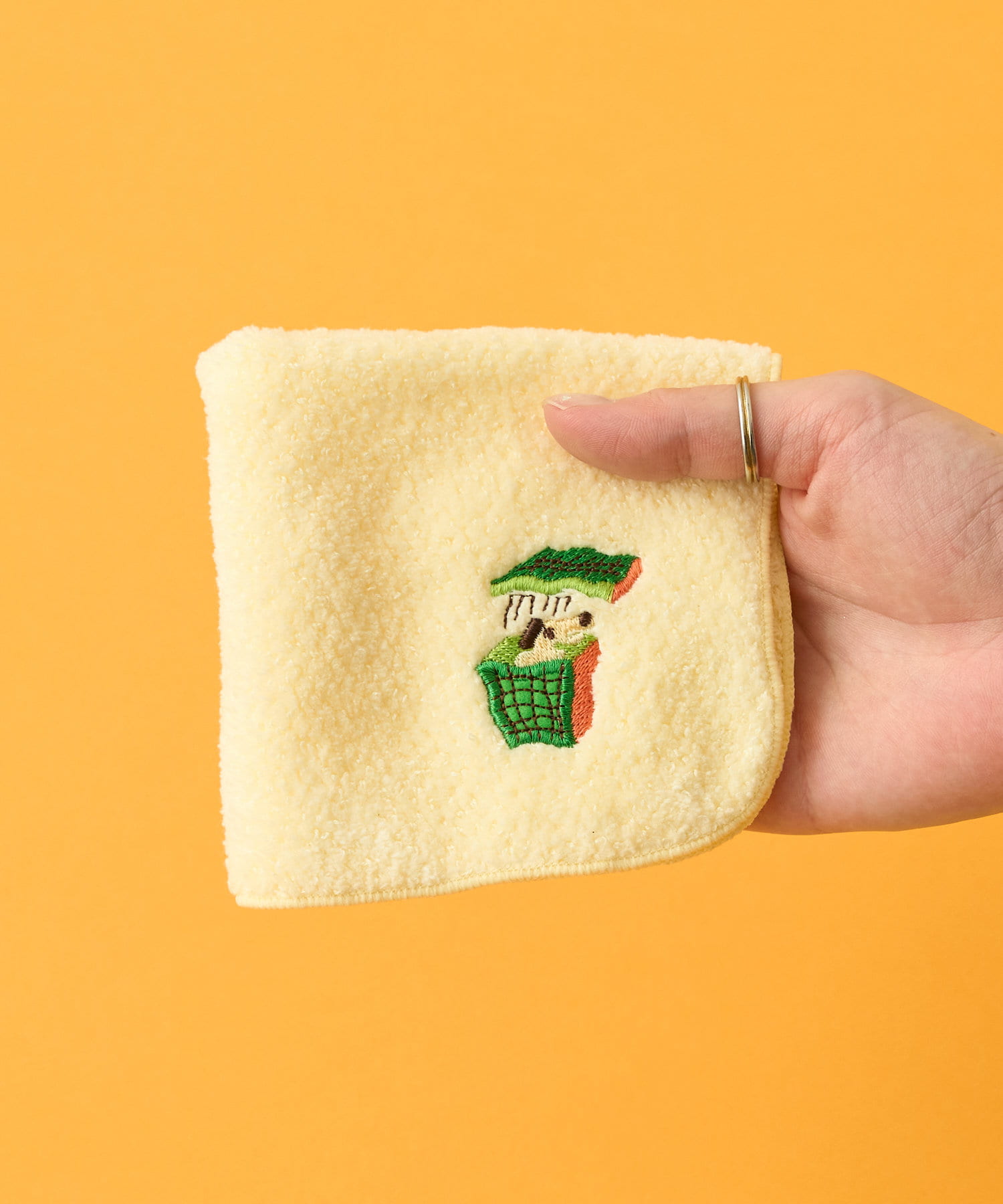 ワンポイントの刺繍に一部フェルト生地を使用した、ぷっくりとしたデザインがユニークなタオルハンカチ。