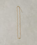 胸元に視線を集める、ゴールドチェーンとパール風パーツのネックレス。