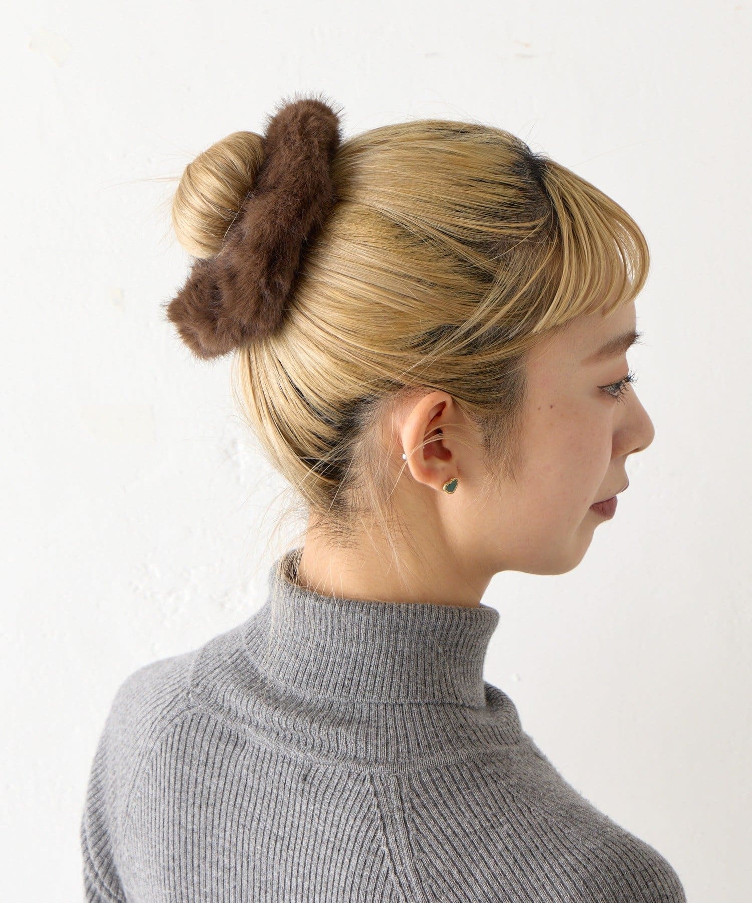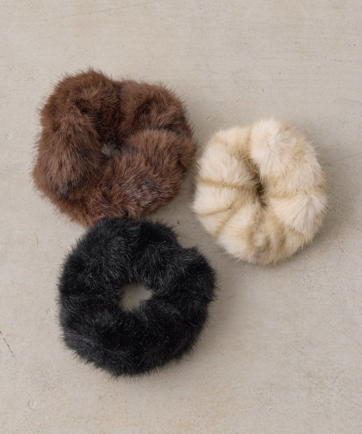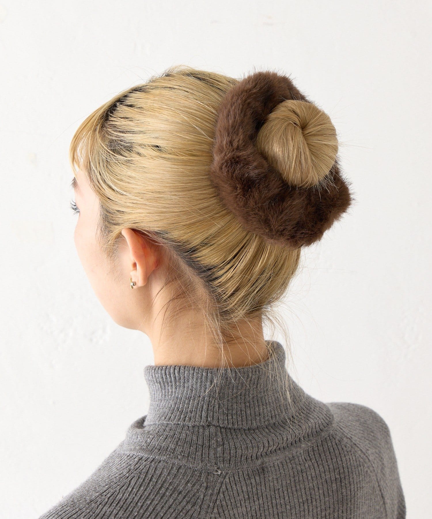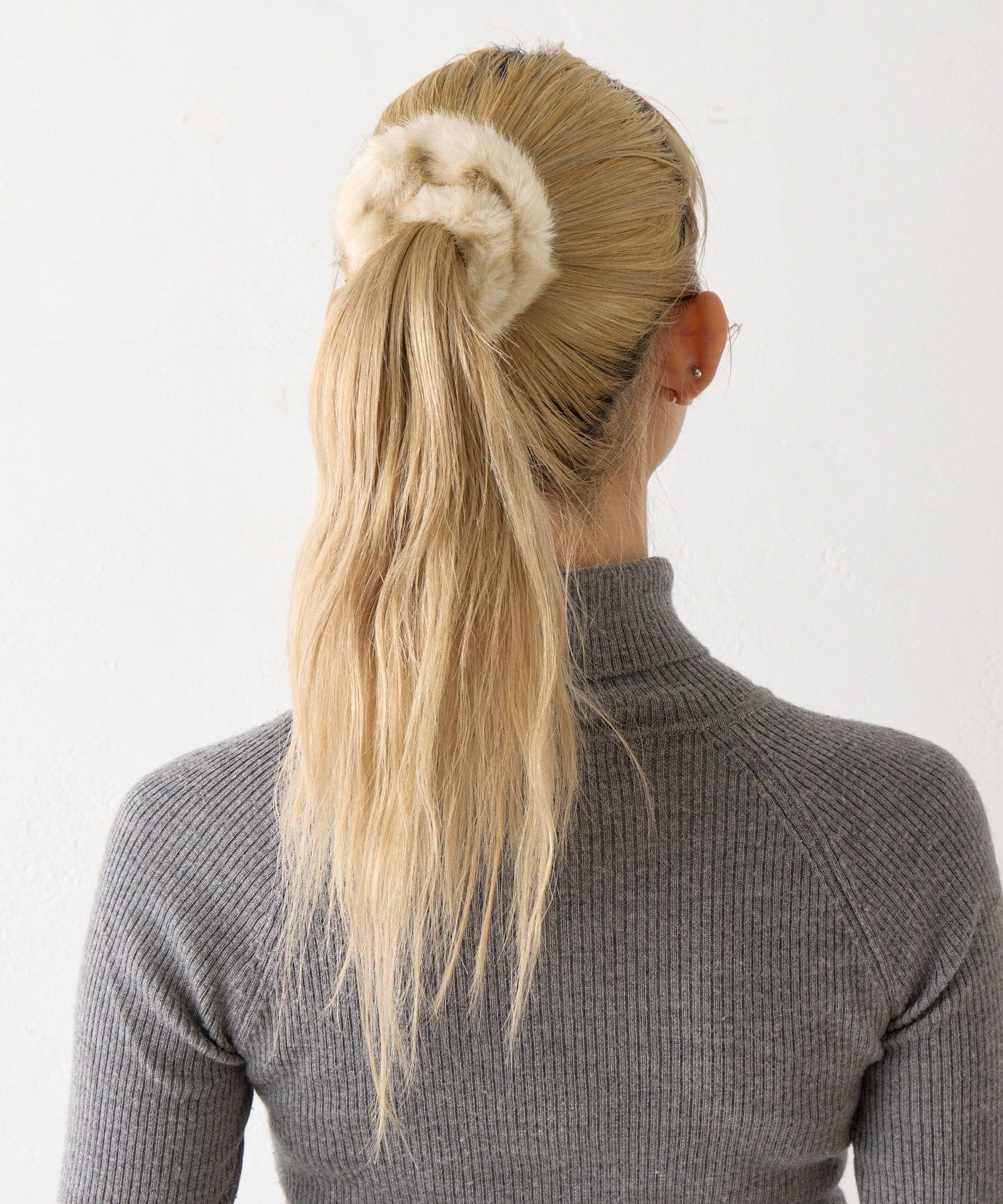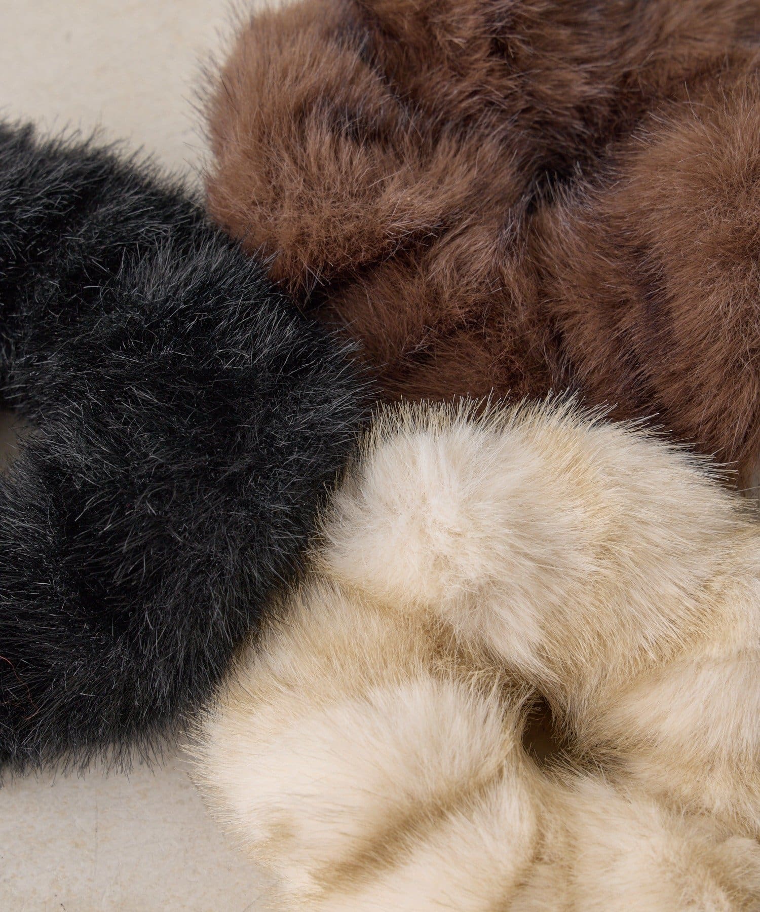フェイクファーを使用した、トレンドのボリュームシルエットのシュシュ。