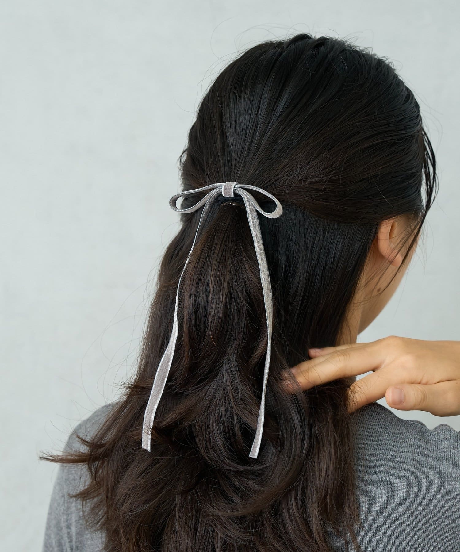 ベロア調の上品なロングリボンが揺れるデザイン。