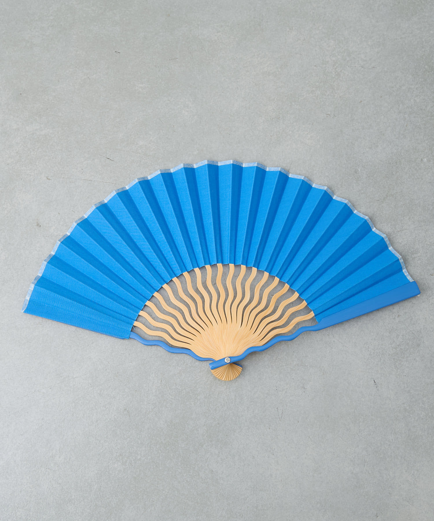 ウネウネとした骨とビビットカラーが目を惹く扇子。