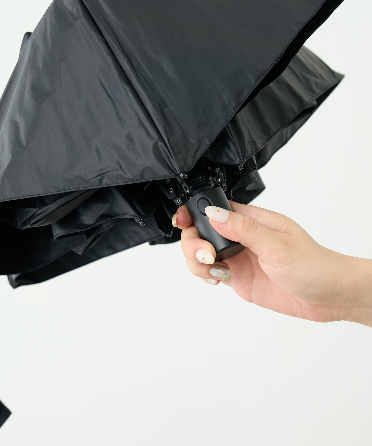 ジャンプ傘のようにボタンを押して自動開閉するため、片手が塞がっていてもパッと開きやすくなっています。