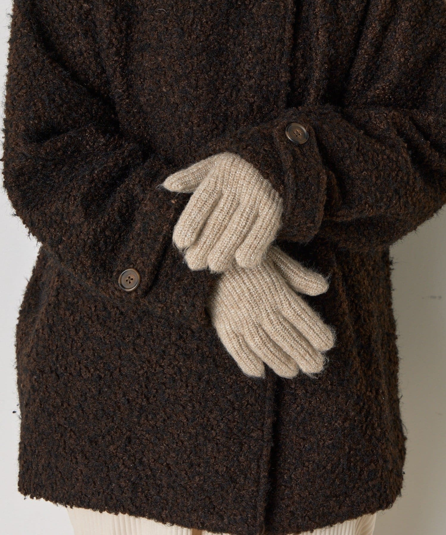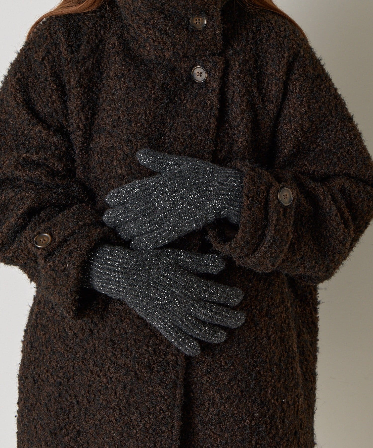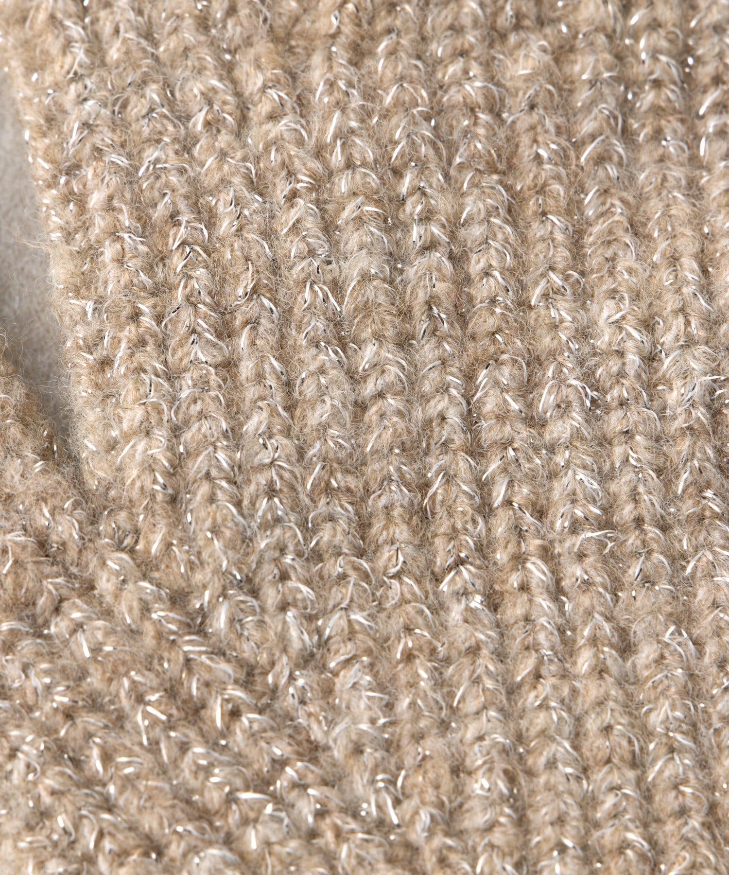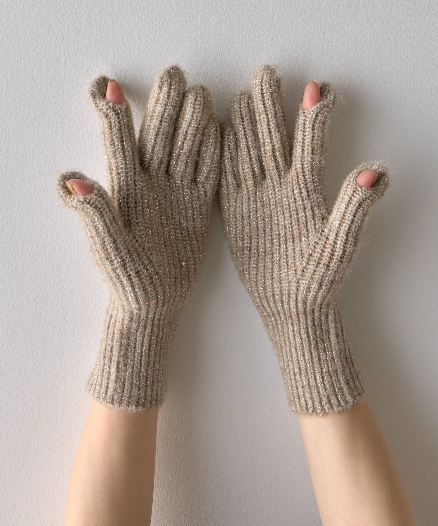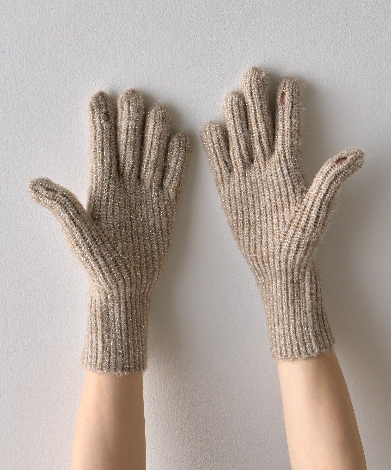 繊細なラメが混紡された糸を使用したニット素材は、光の加減で上品に輝き、手元を美しく彩ります。