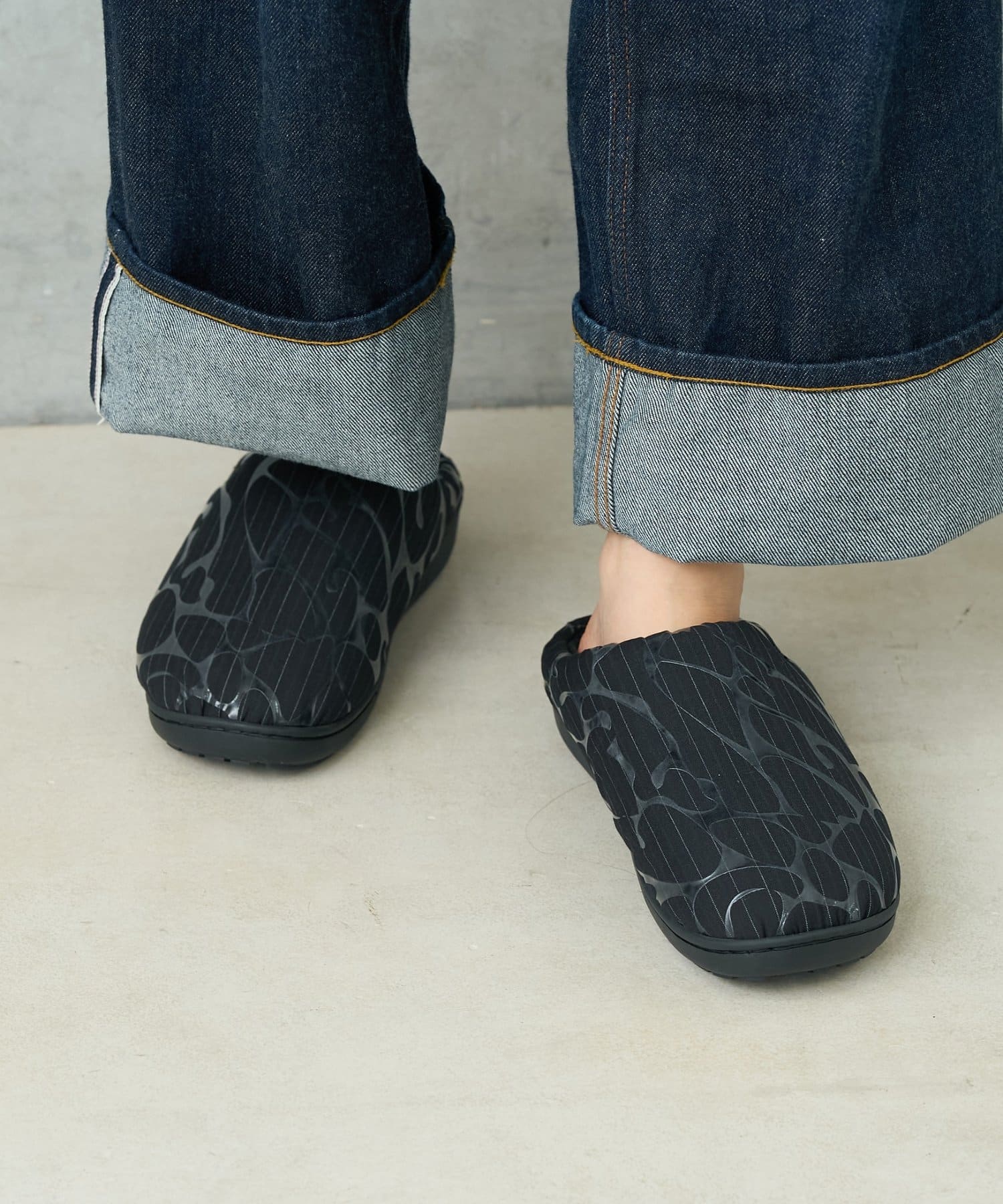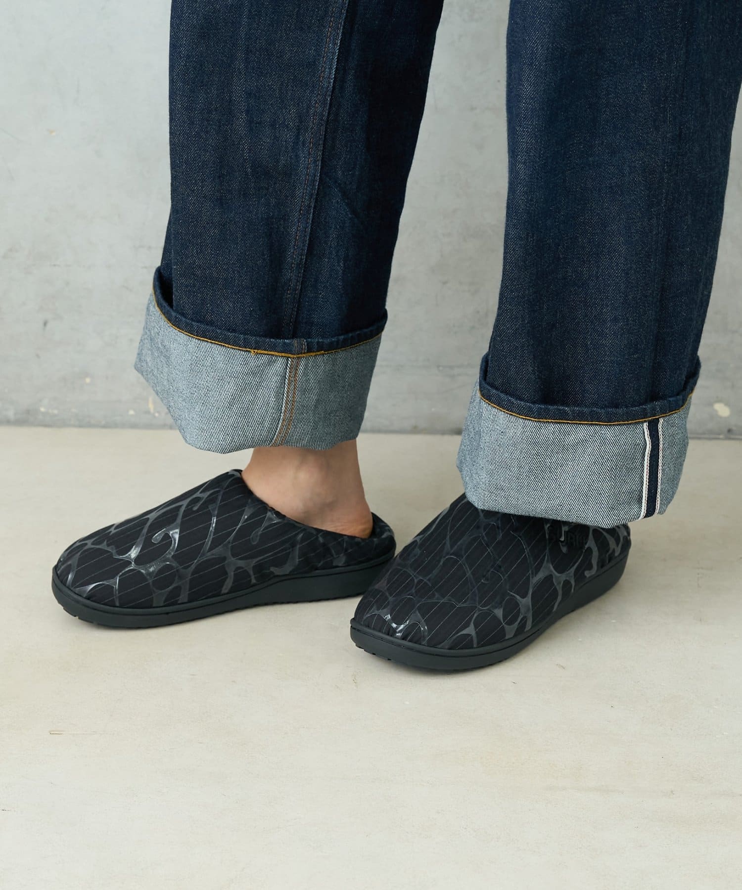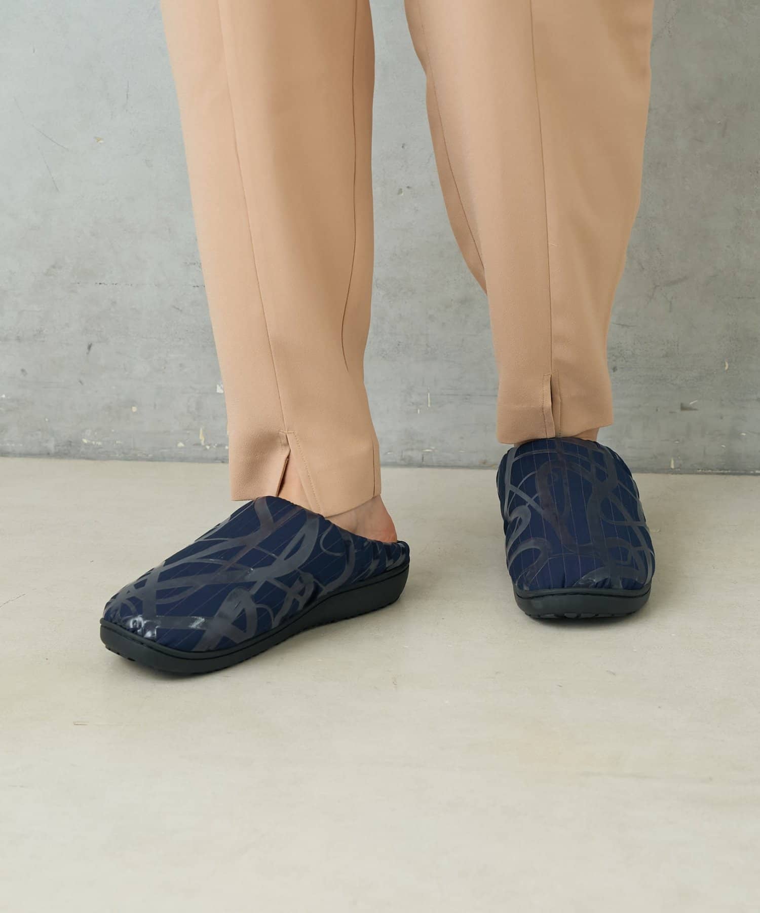 ルームシューズとしてはもちろん、近所へ散歩などちょっとした外出にも使用可能な屋内外対応デザイン。