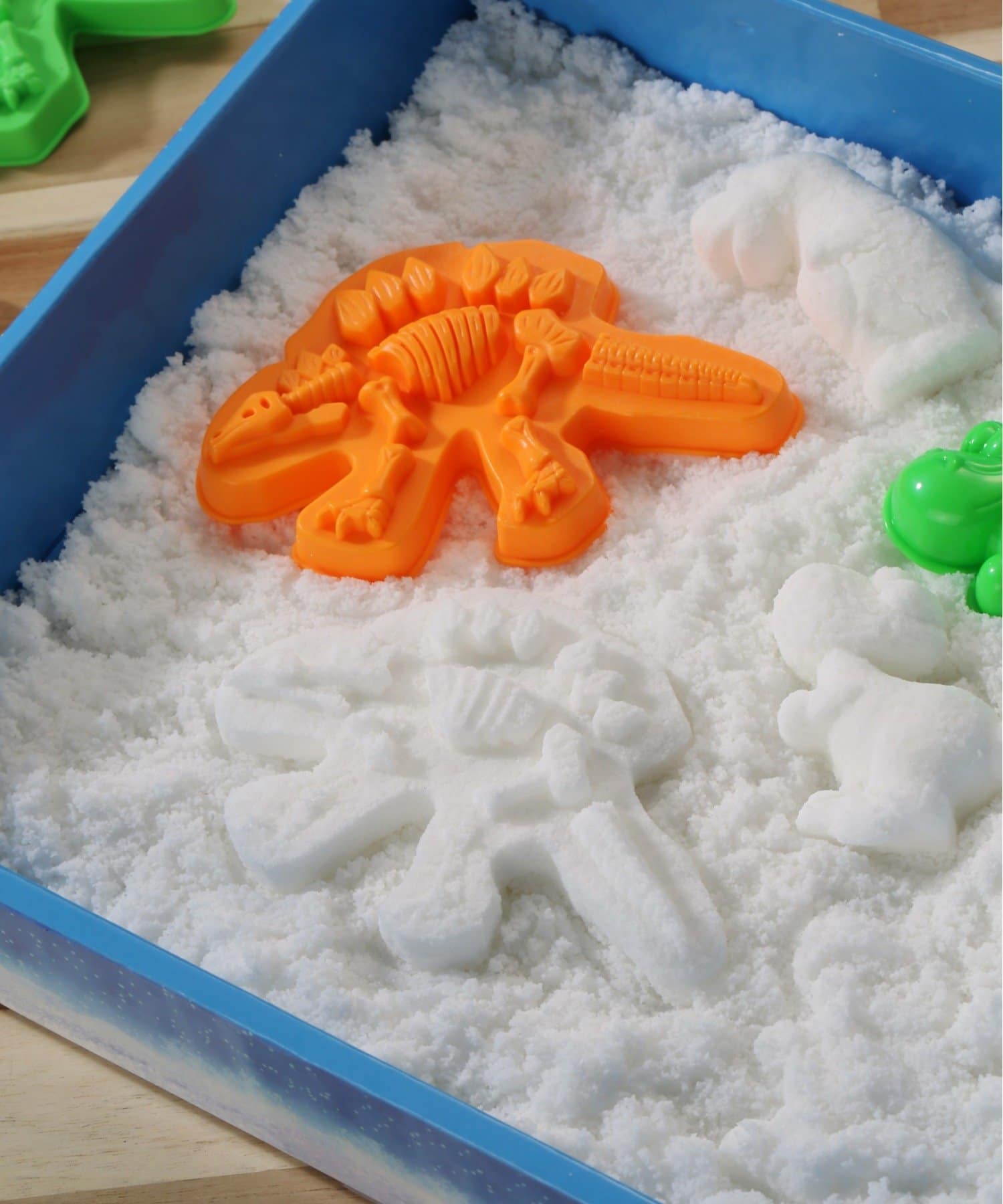 雪を型に入れて、オリジナルの恐竜を作ったり、化石を発掘したり。