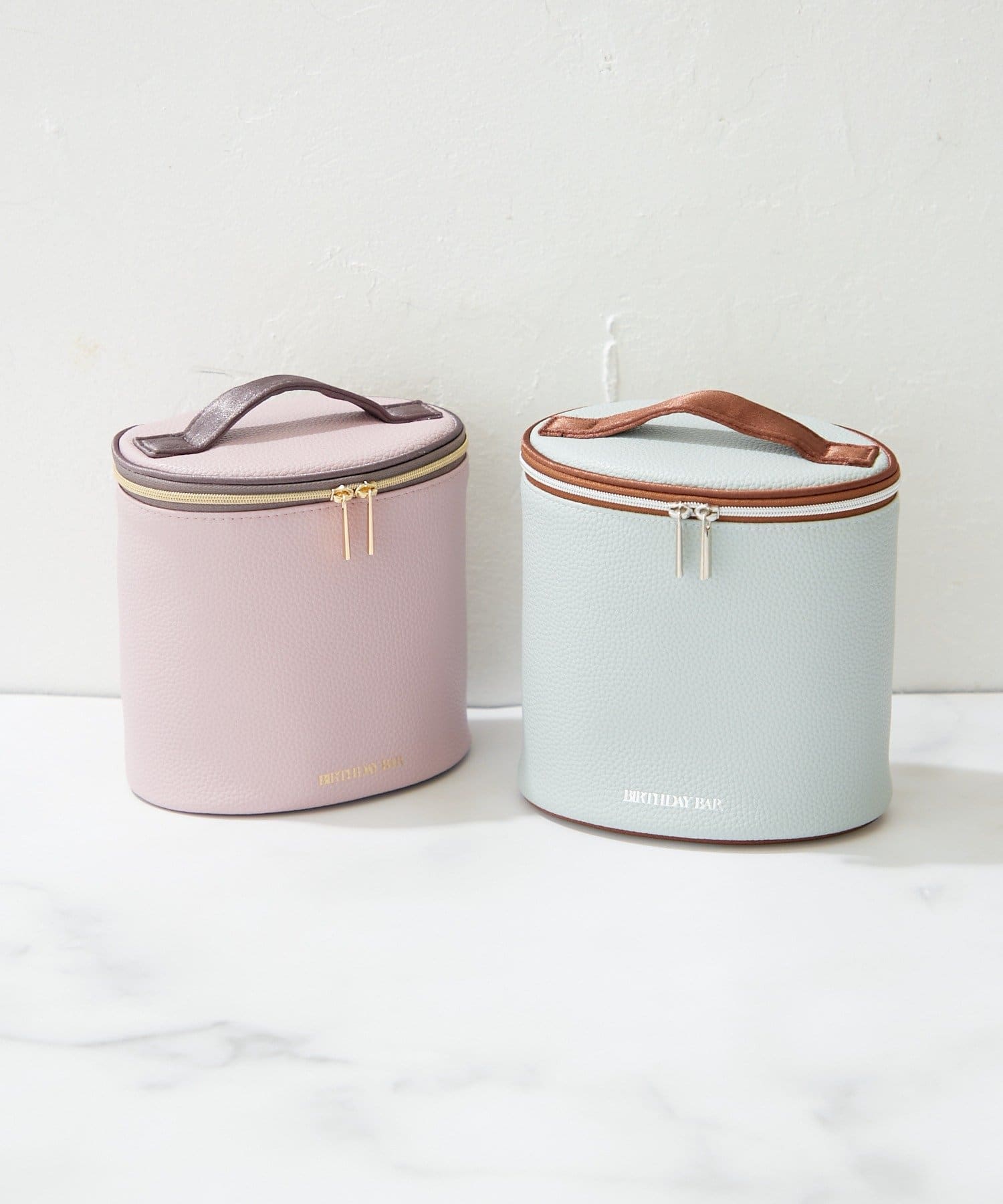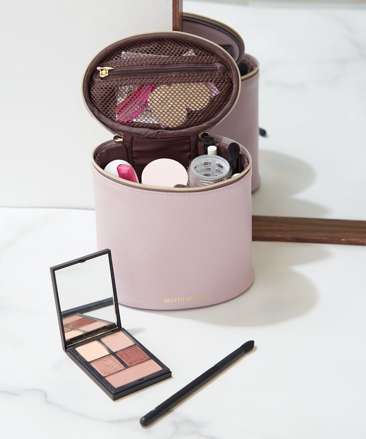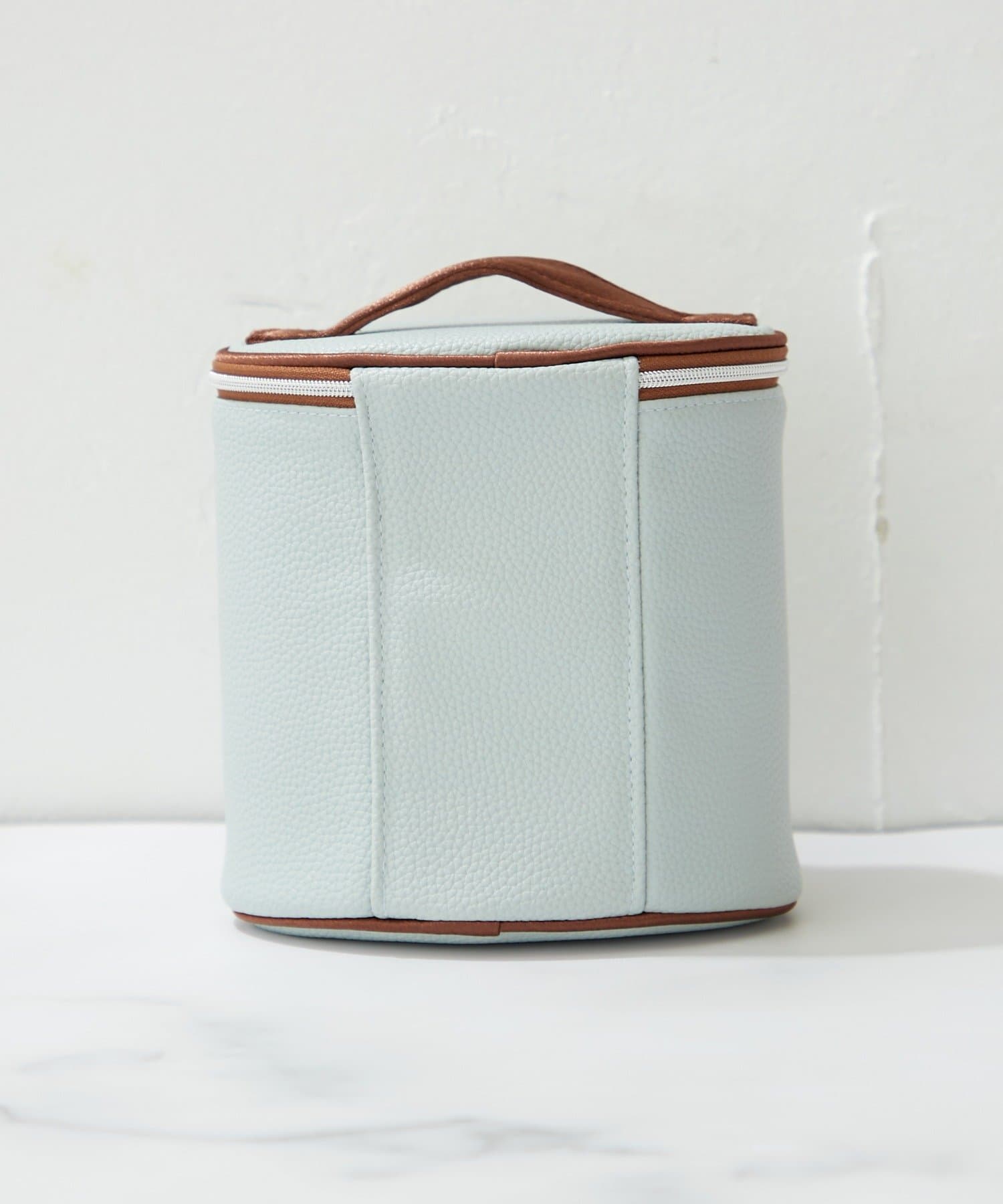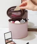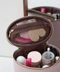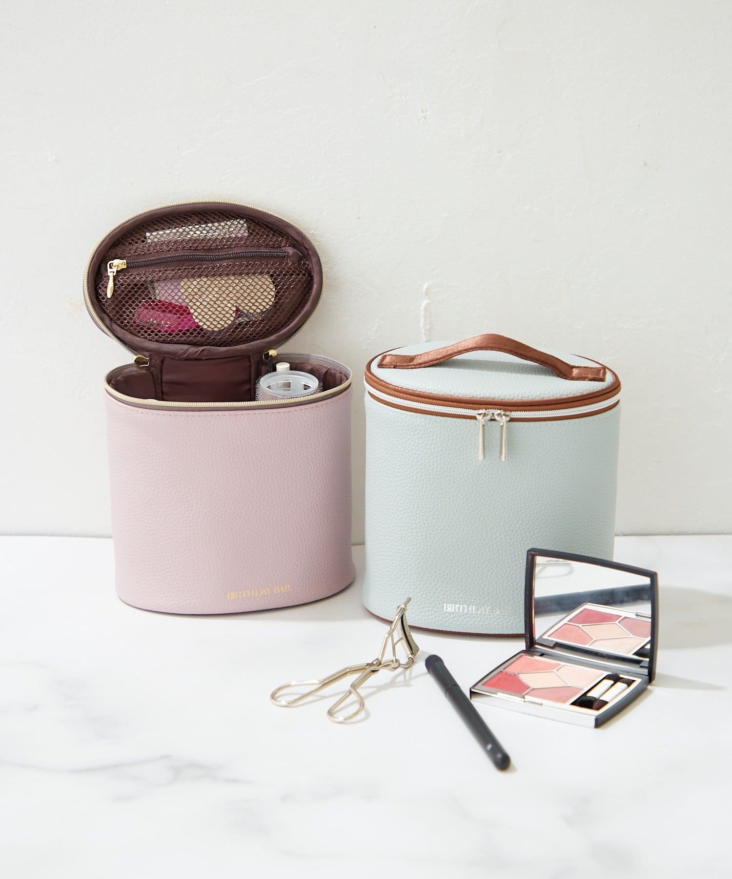 使いたいアイテムを立てたまま収納できるスタンド型のバニティポーチです。