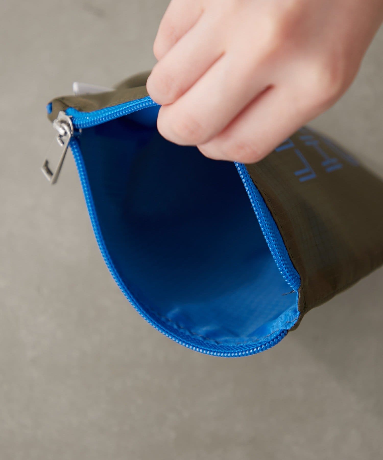 カラーごとに異なるロゴとファスナーの配色とラウンドの形がポイントです。