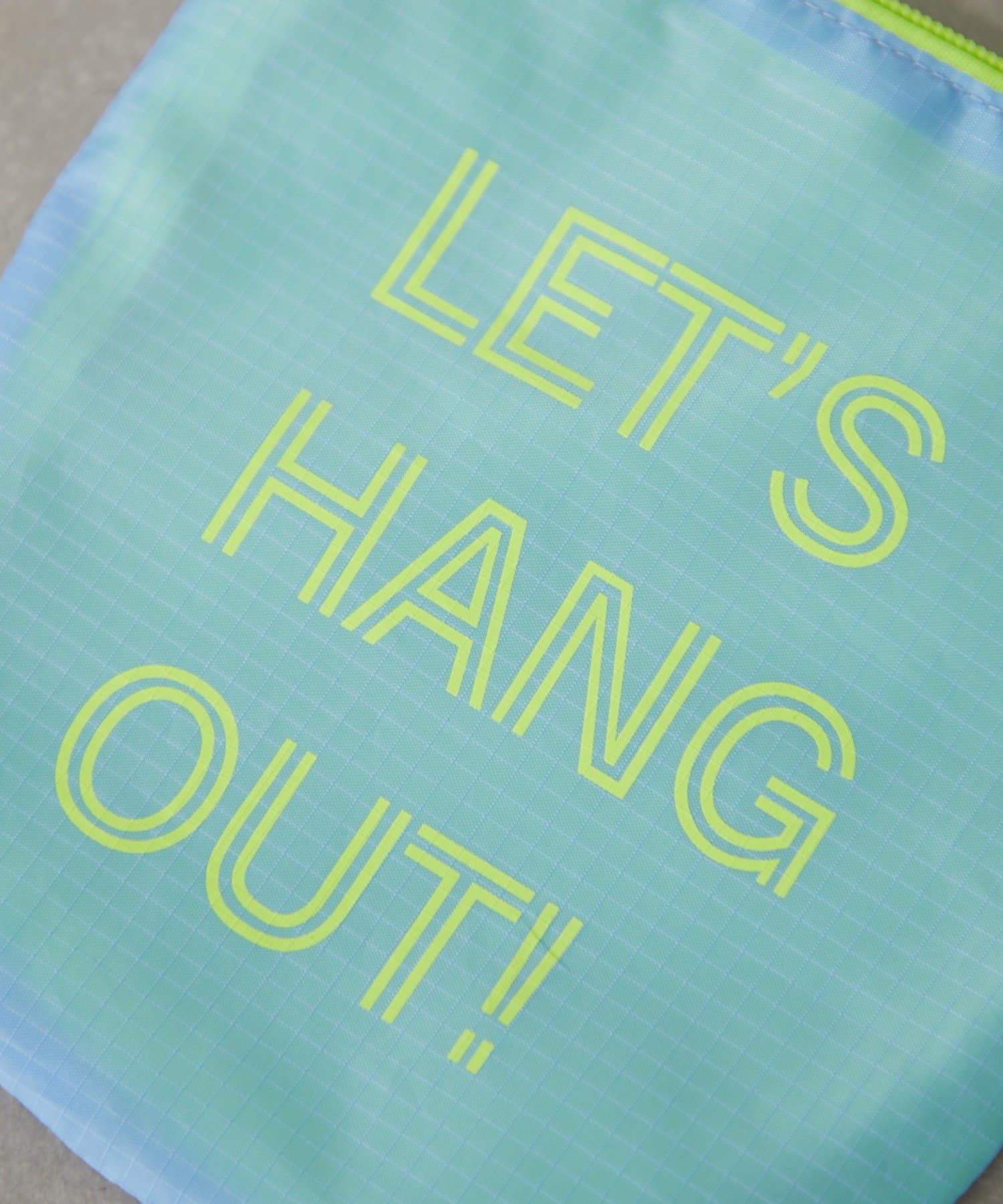フロントに「LET'S HANG OUT!(一緒に遊ぼう!)」というキャッチーなメッセージロゴがプリントされた、遊び心たっぷりなデザイン。