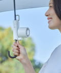 さらに傘に取り付け可能なので、片手で冷風を浴びつつ日傘もさせられ、両手が塞がらずストレスフリーに。