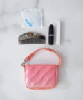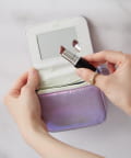 リップや小物をミニマムに持ち歩けるちょうどいいサイズ。ミラーは付属なのでこのポーチさえ持っていればOK。