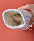 雰囲気のある洗いざらしのインド綿100%を使用した表地は、定番柄にポップなカラーを組み合わせました。