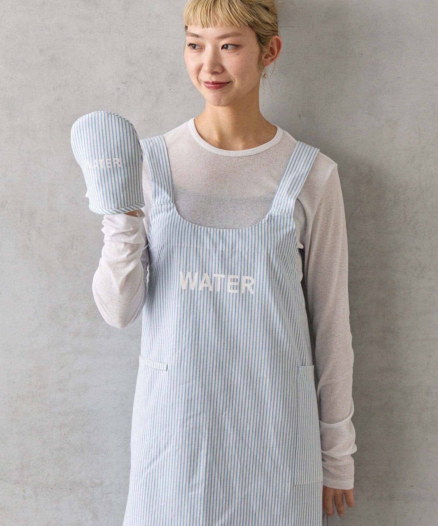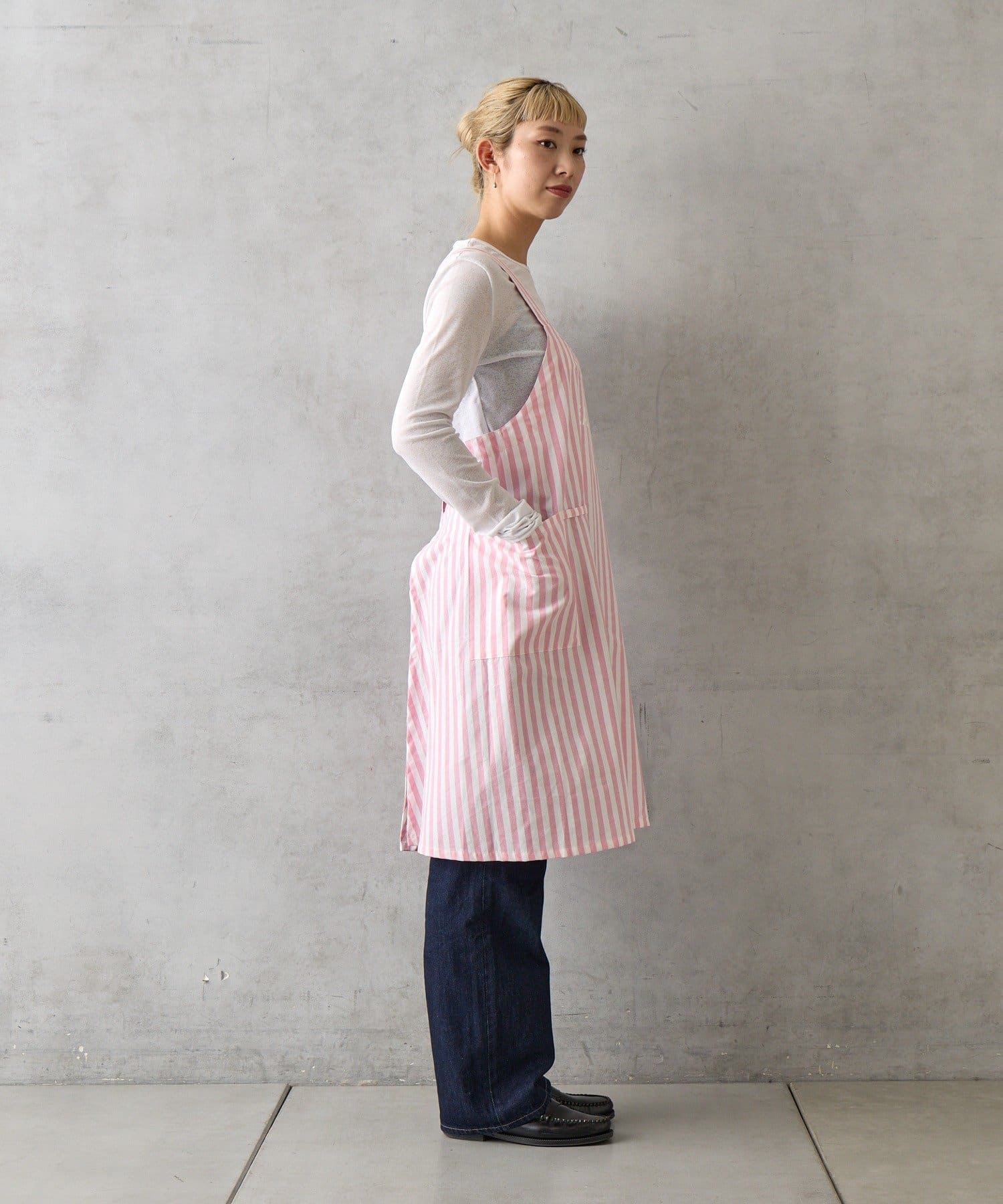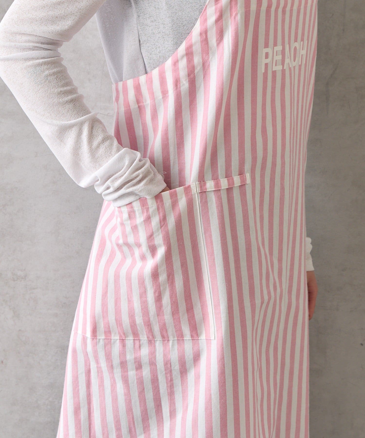 かぶるだけで簡単に着脱できるストレスフリーな仕様のエプロン。