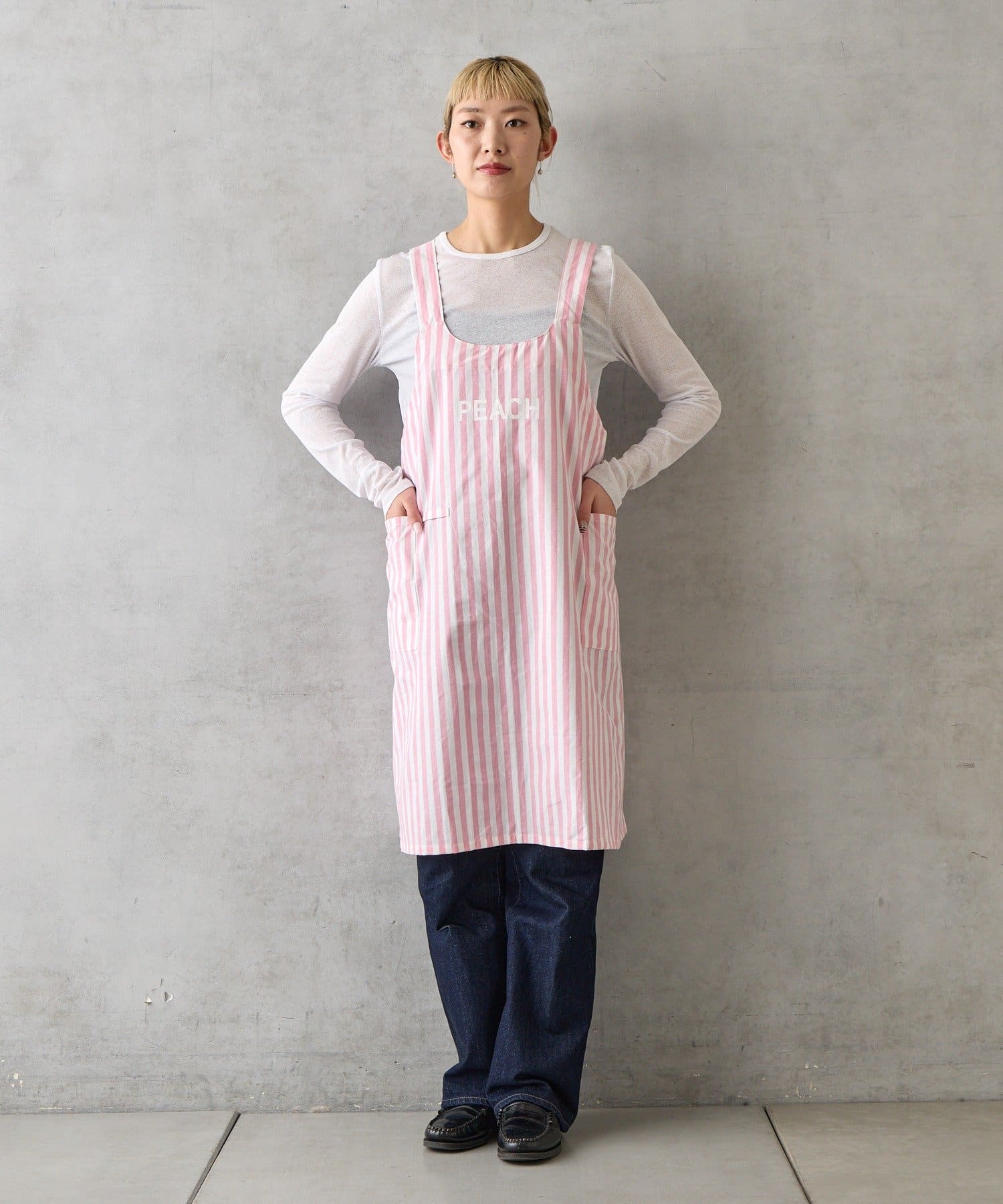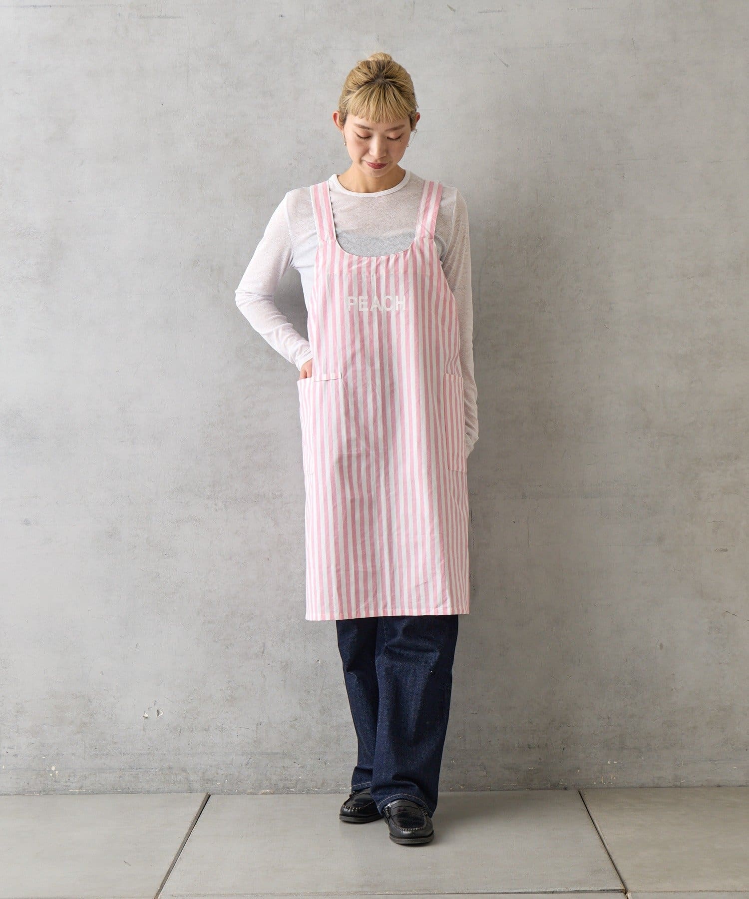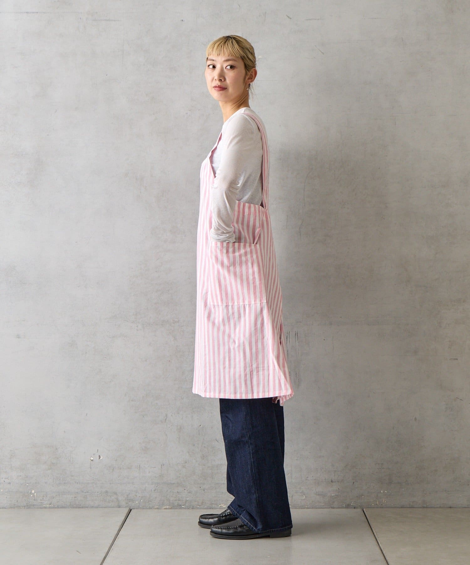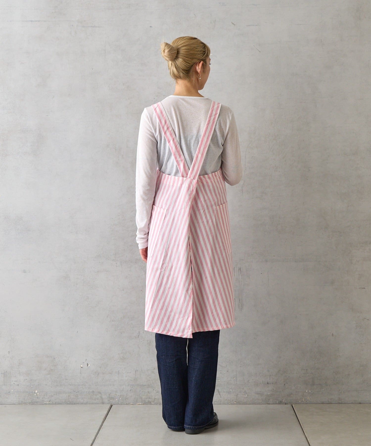かぶるだけで簡単に着脱できるストレスフリーな仕様のエプロン。