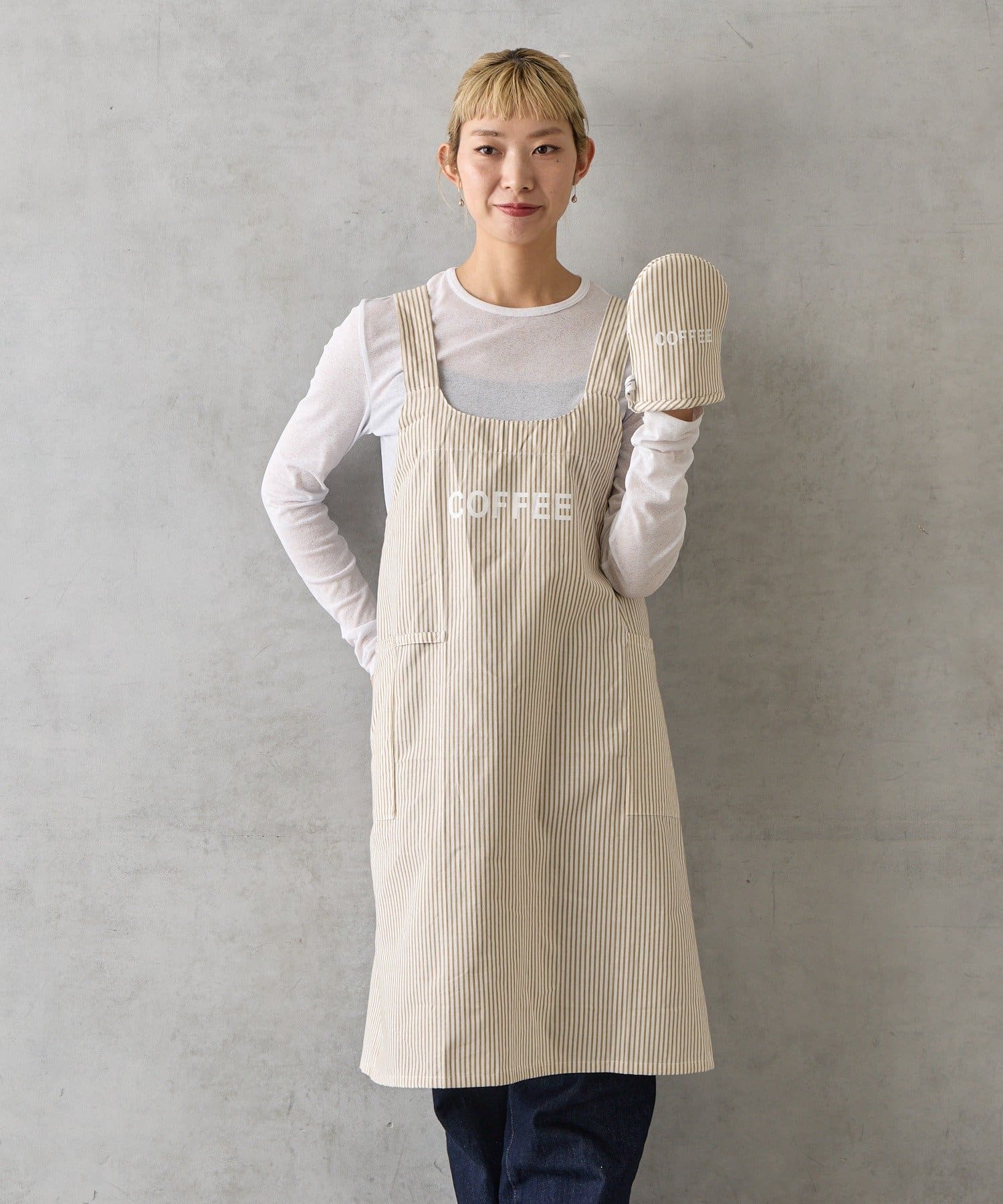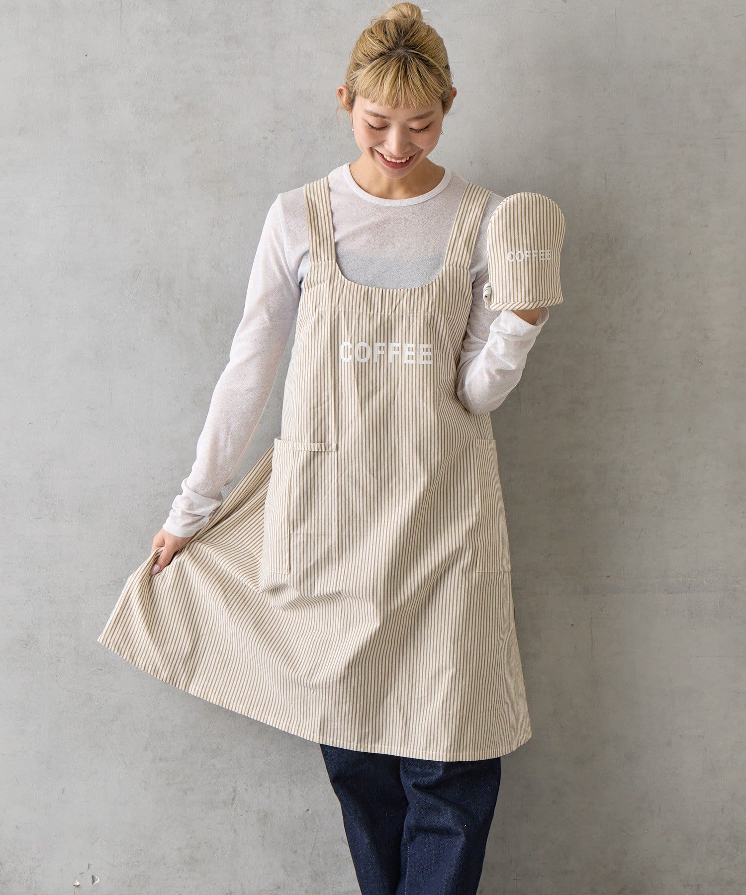 STRIPE COTTONギフトセット エプロン/ミトン/キッチンクロス
