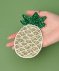 キラキラと輝くガラスビーズを贅沢に使用した、キュートなフルーツモチーフのコースター。