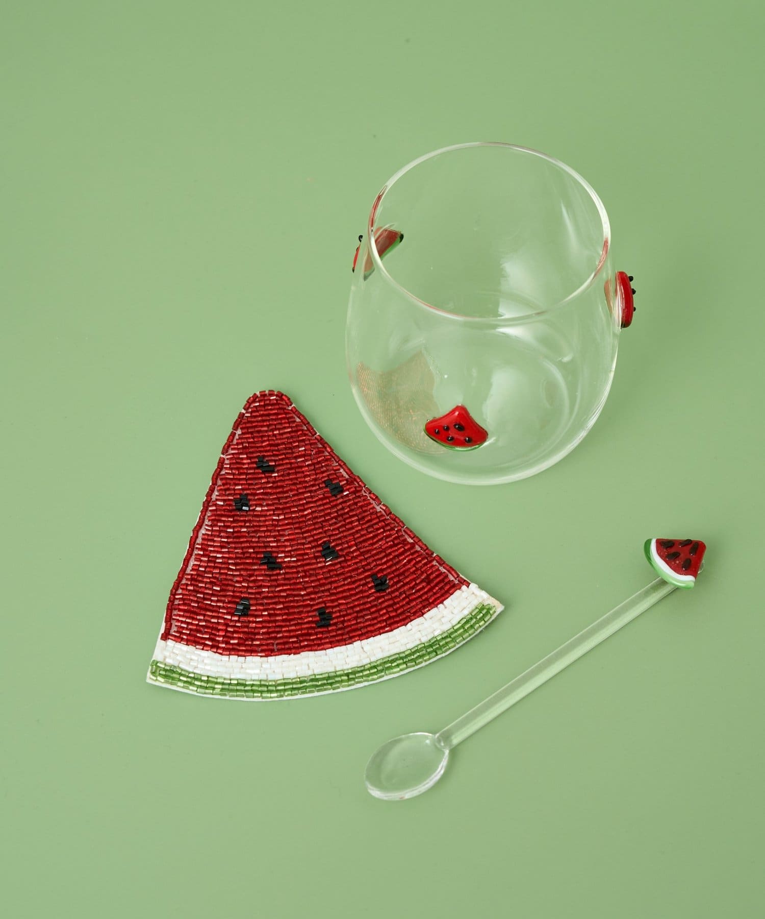 別ページで販売中のフルーツモチーフのガラススプーンやタンブラーとセットで使うのもおすすめ。