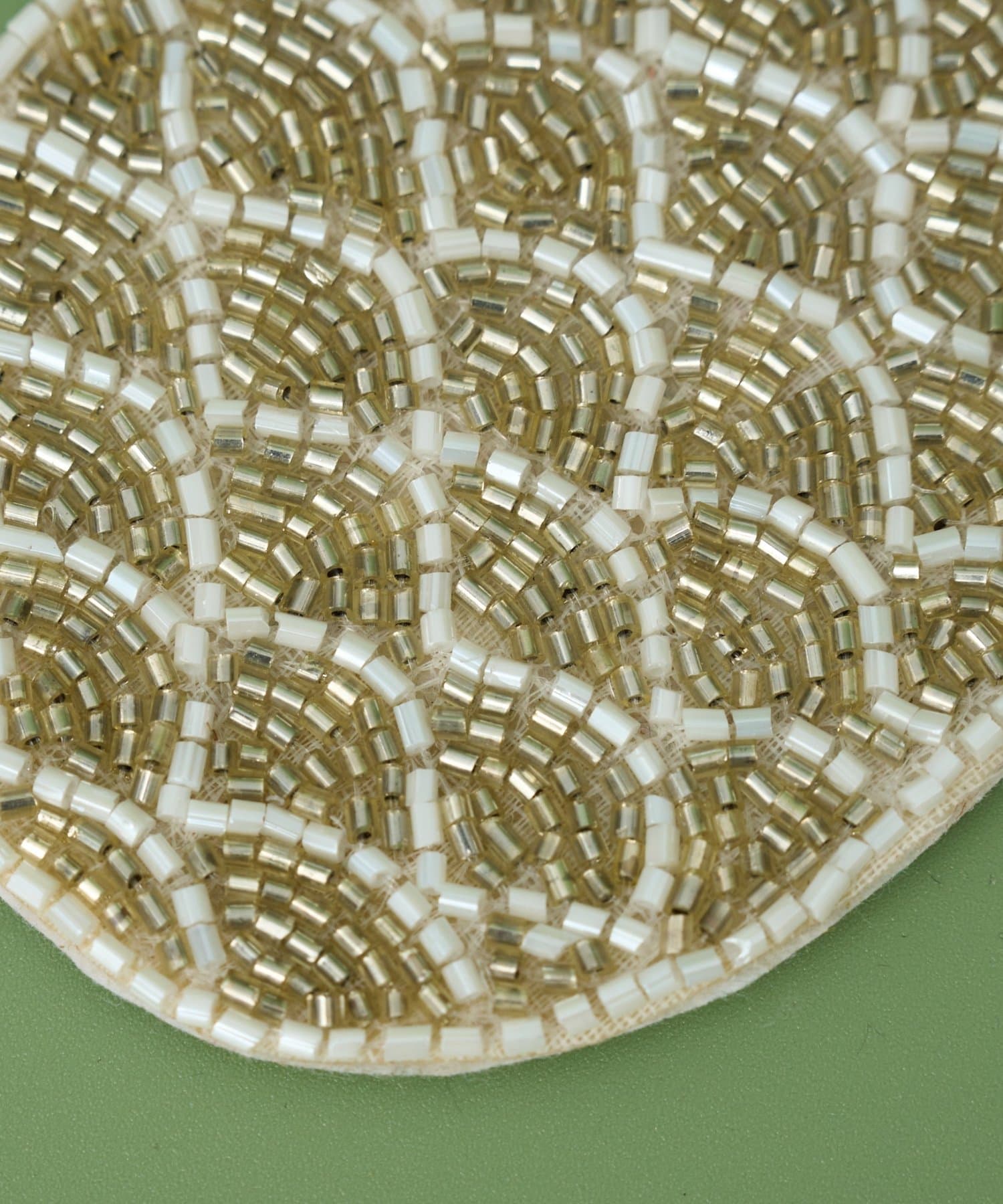 一つ一つ手作業で丁寧にビーズを縫い付けた、ハンドメイドならではの温かみと繊細なディテールが魅力です。