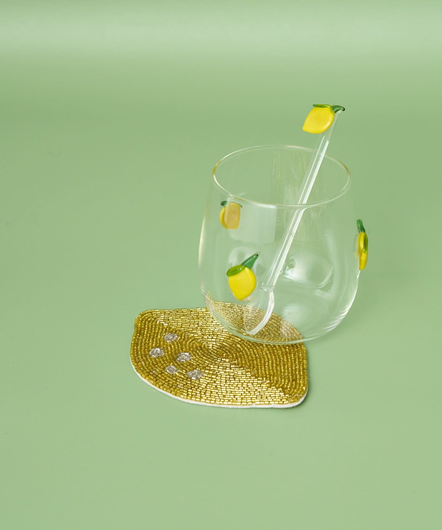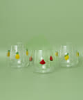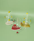 食卓をポップで明るい雰囲気にしてくれる、グラスの周りにフルーツモチーフをちりばめたガラスタンブラー。