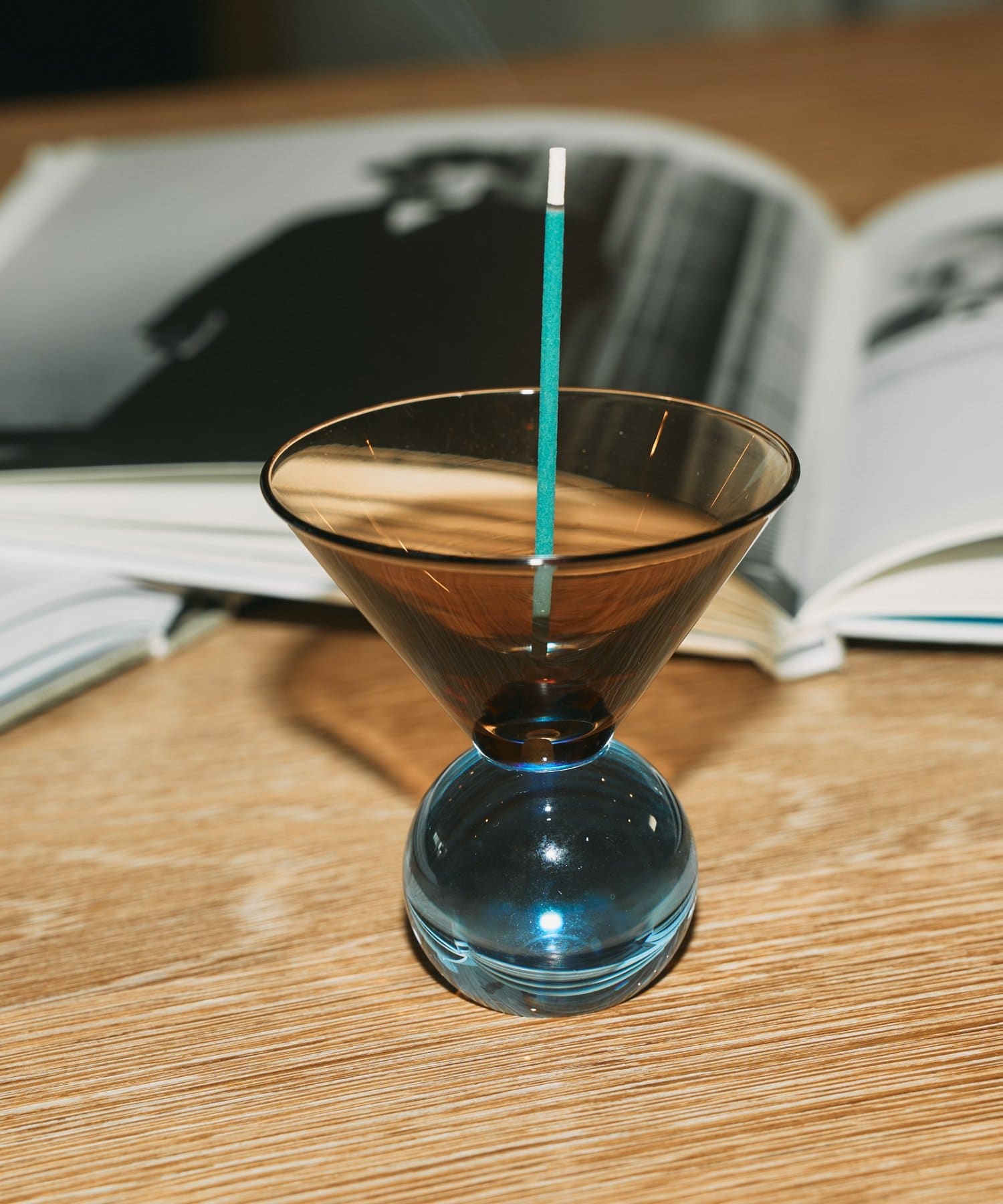 お香を灯すと、ガラスの美しい透明感が炎を映し出し、幻想的な雰囲気を演出。