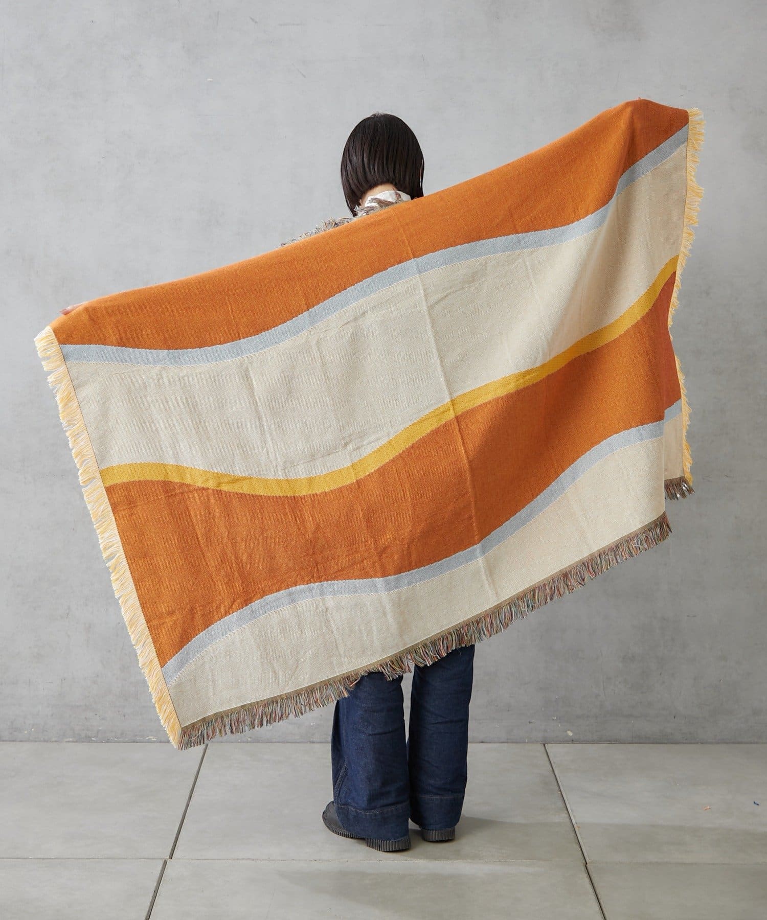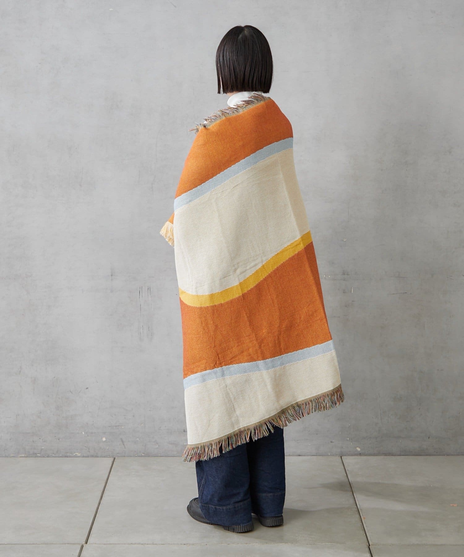 長方形なので、羽織るのにもちょうどよい大きさでひざ掛けとしても。