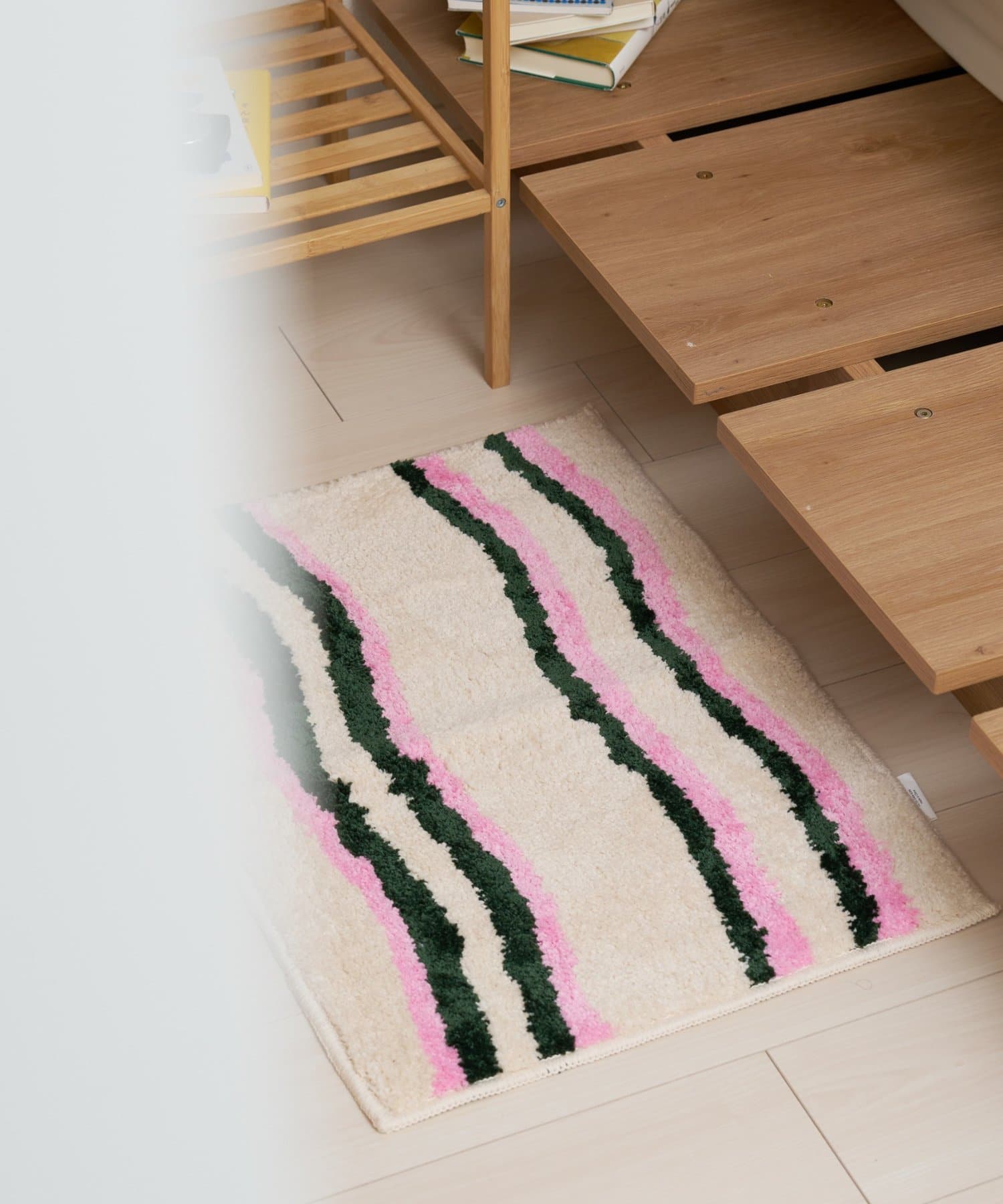 滑り止めつきで実用的ながらもお部屋の雰囲気を変えてくれるアイテムです。