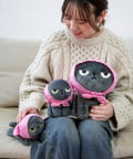 スカーフを着脱できるマチコさんの手乗りぬいぐるみ。スカーフを外すとイカ耳が!