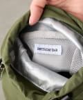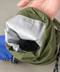 軽くて薄いナイロン素材で、内側は保冷仕様に。内側のポケットに保冷剤を入れておけば保冷効果も◎