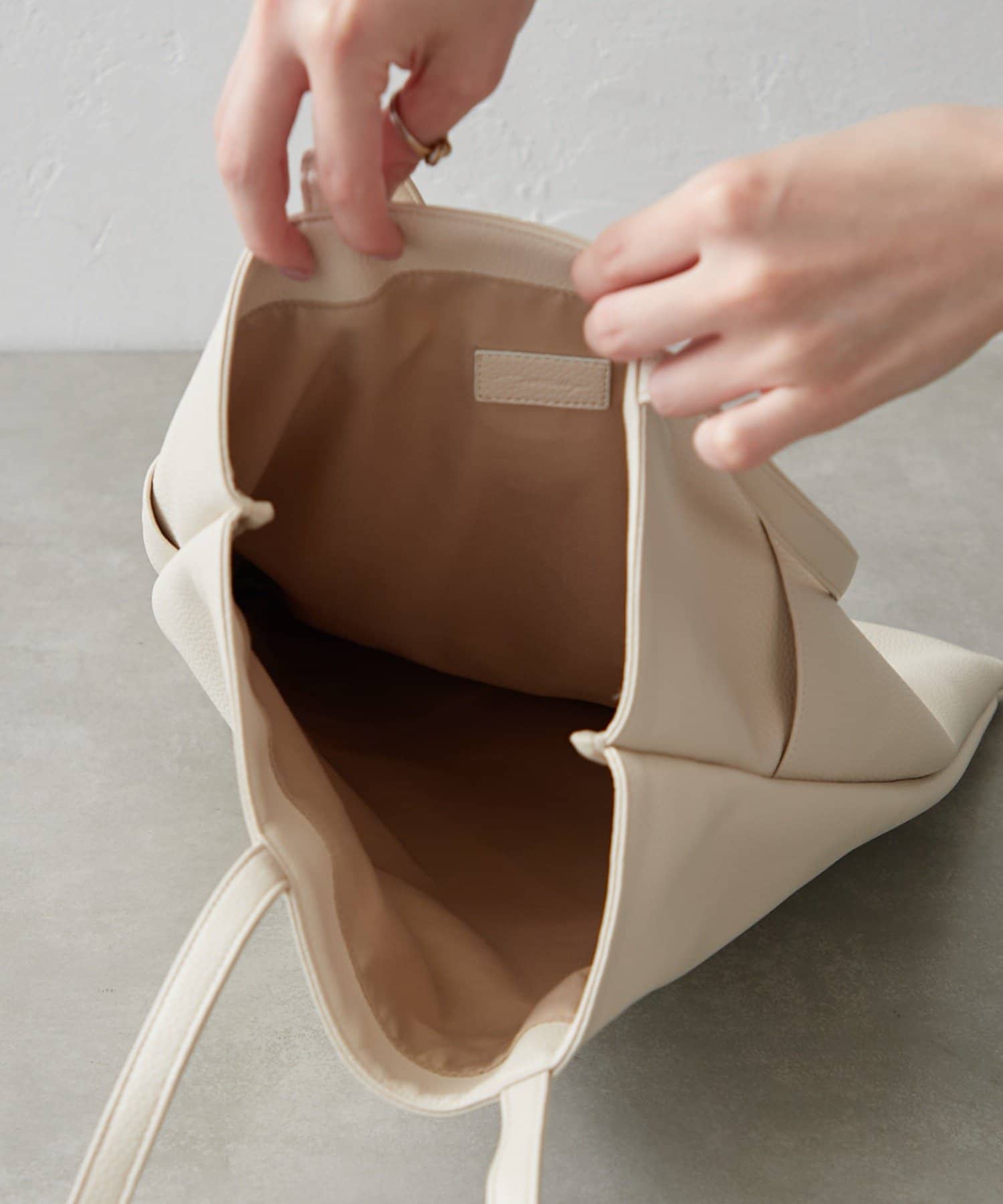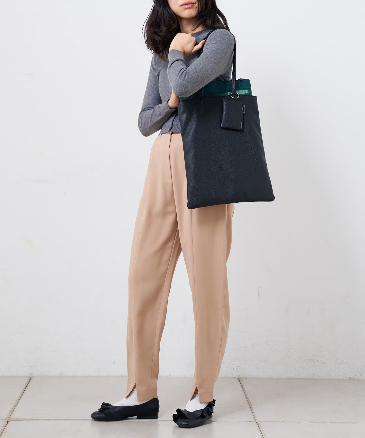 収納力抜群のスタイリッシュなスクエアフォルムのフラットトートバッグ