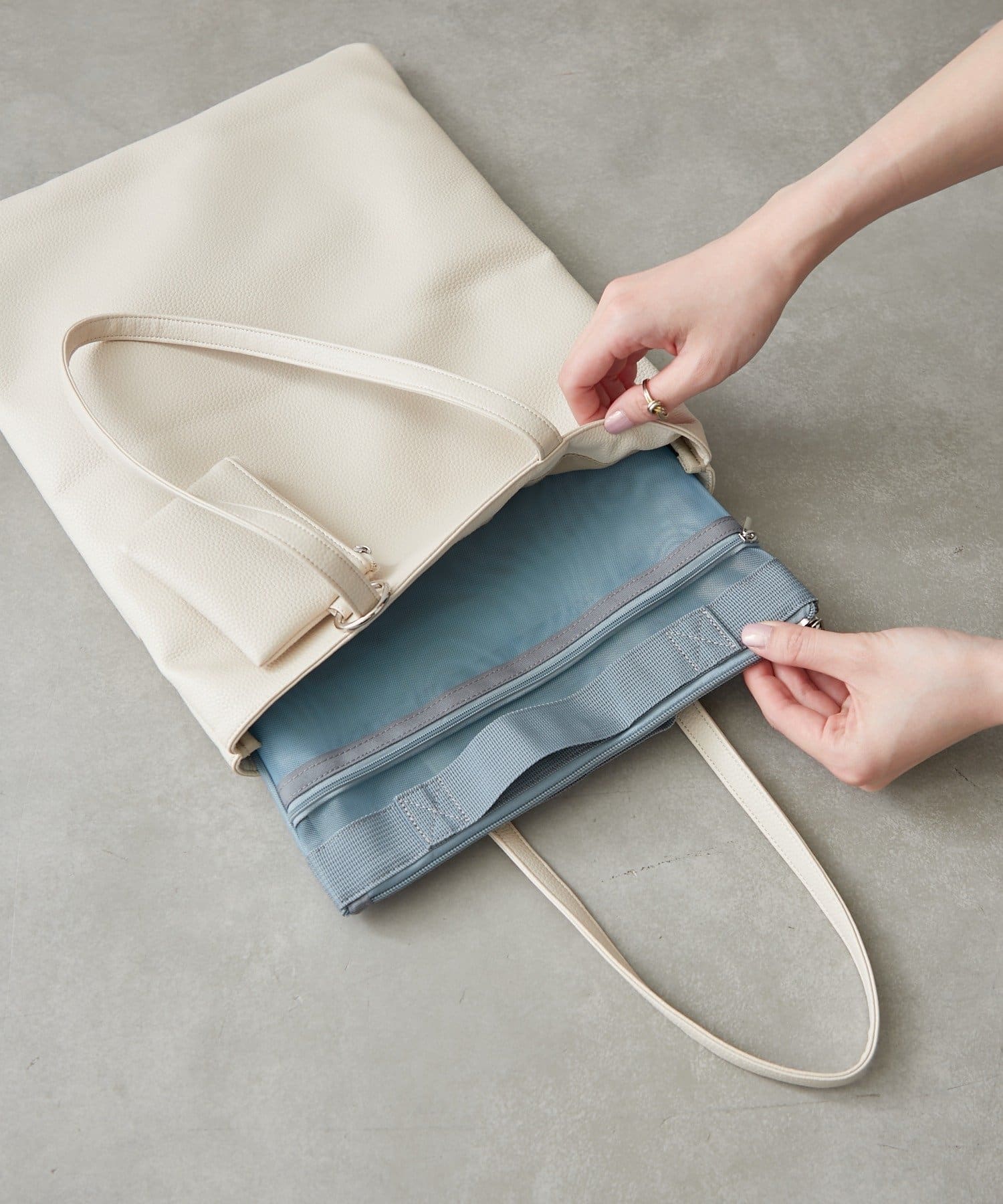 ・メッシュバッグインバッグ:幅27×高さ36cm ※A4収納可能