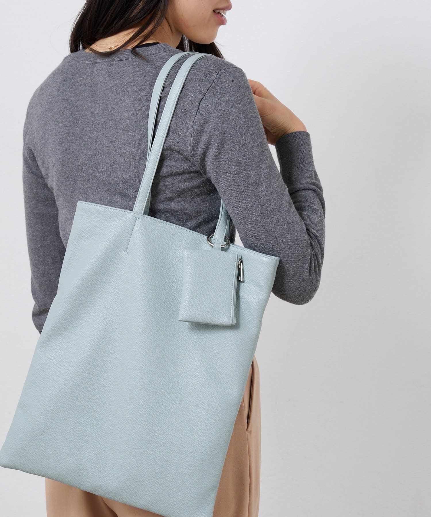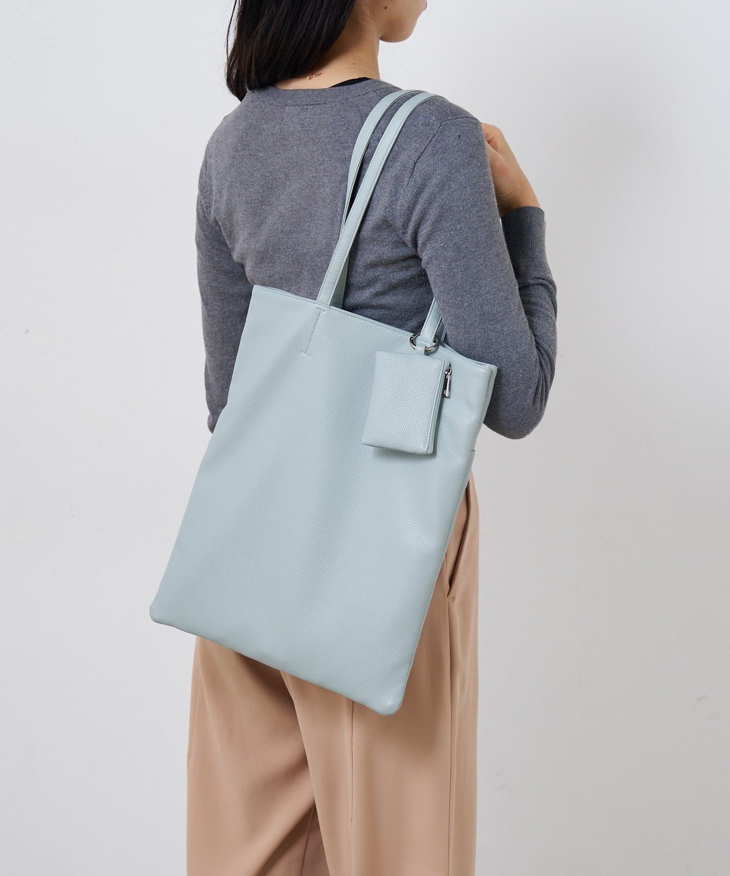 フェイクレザーフラットバッグ メッシュバッグインバッグ