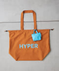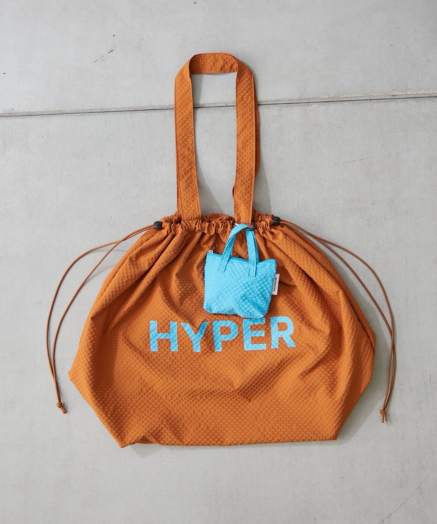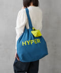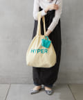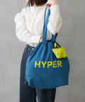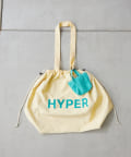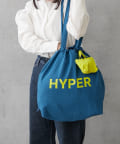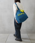 ポップなロゴが印象的なビッグサイズの巾着トートバッグ。