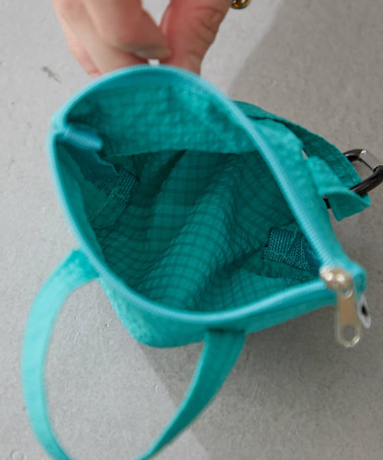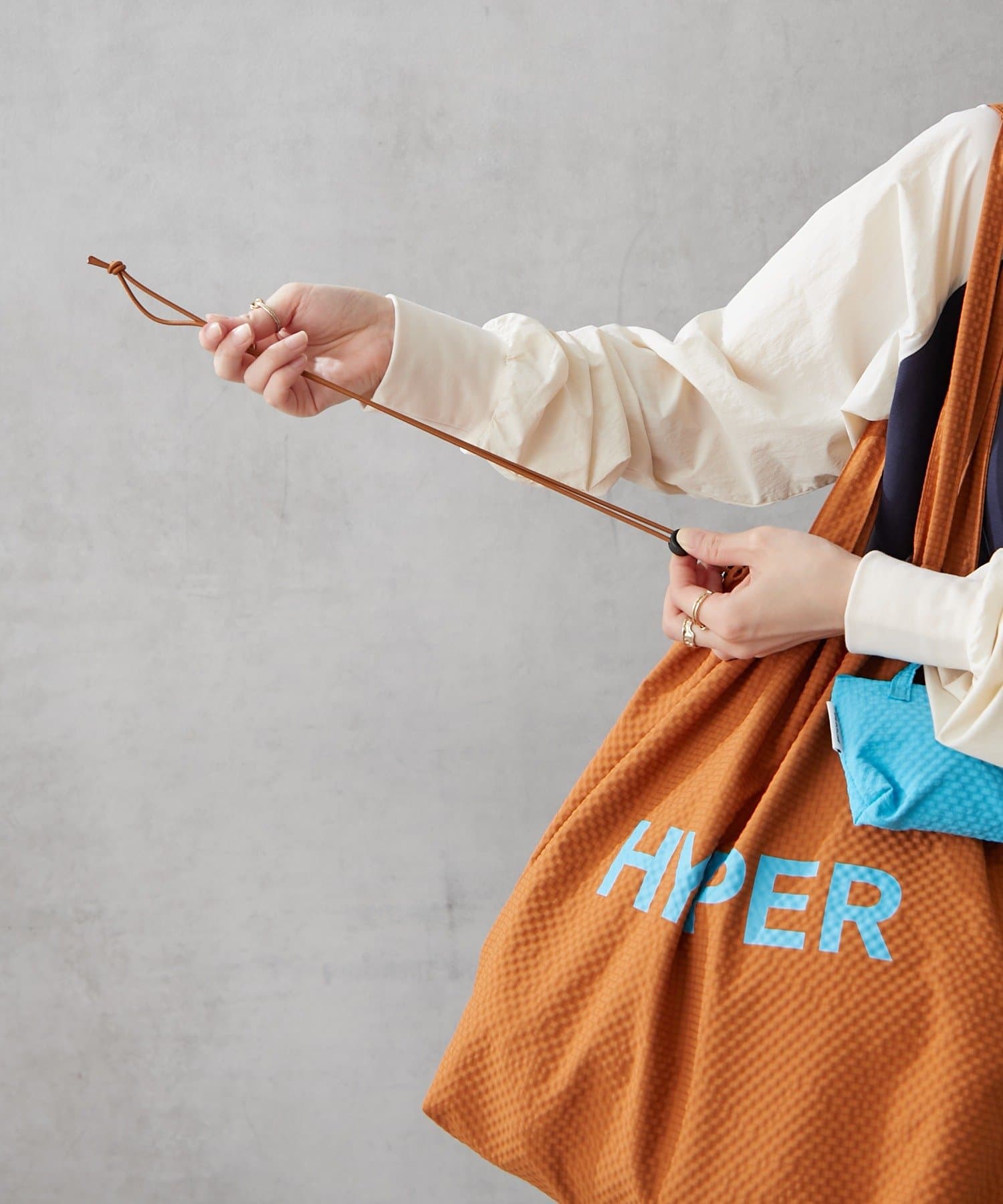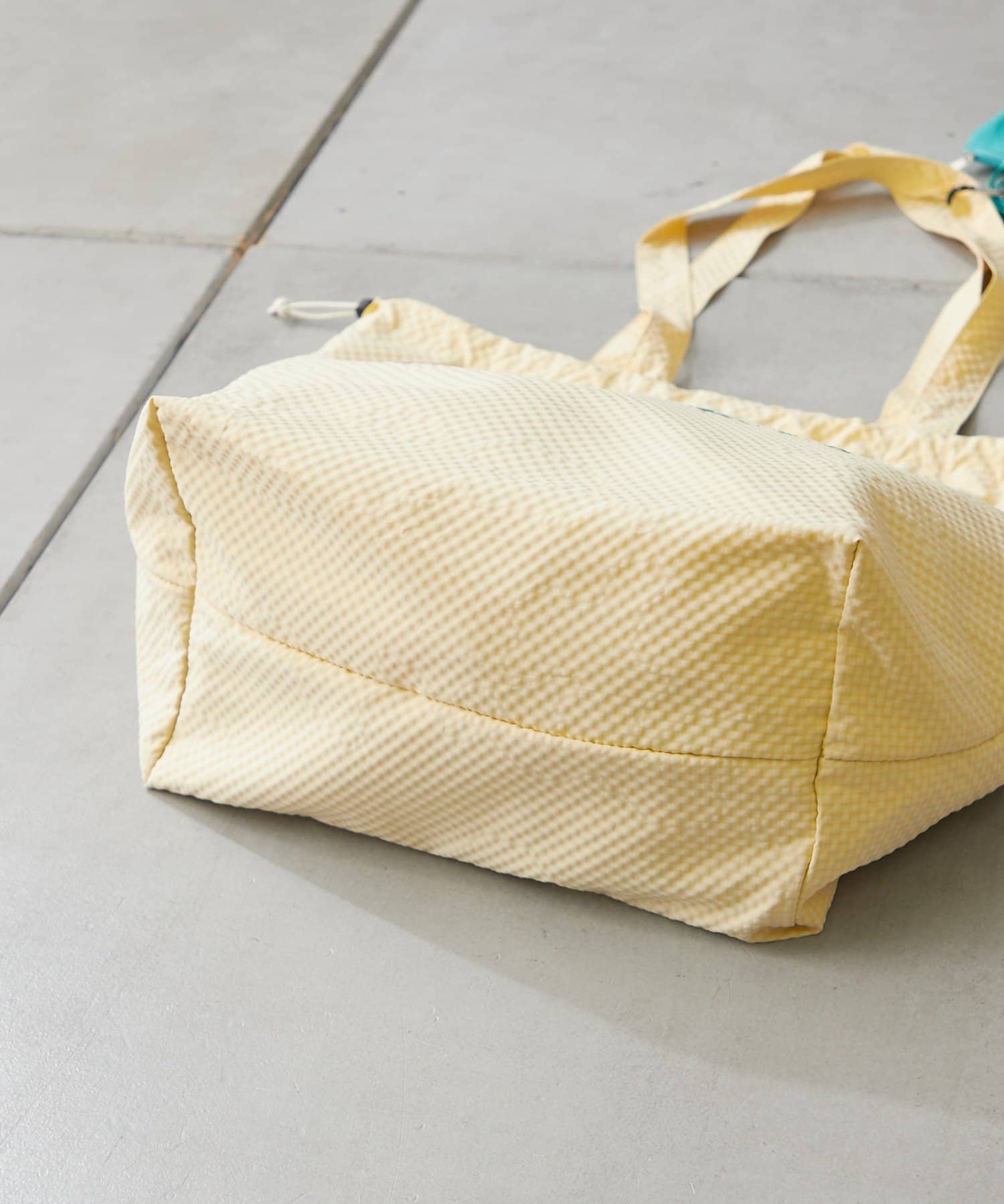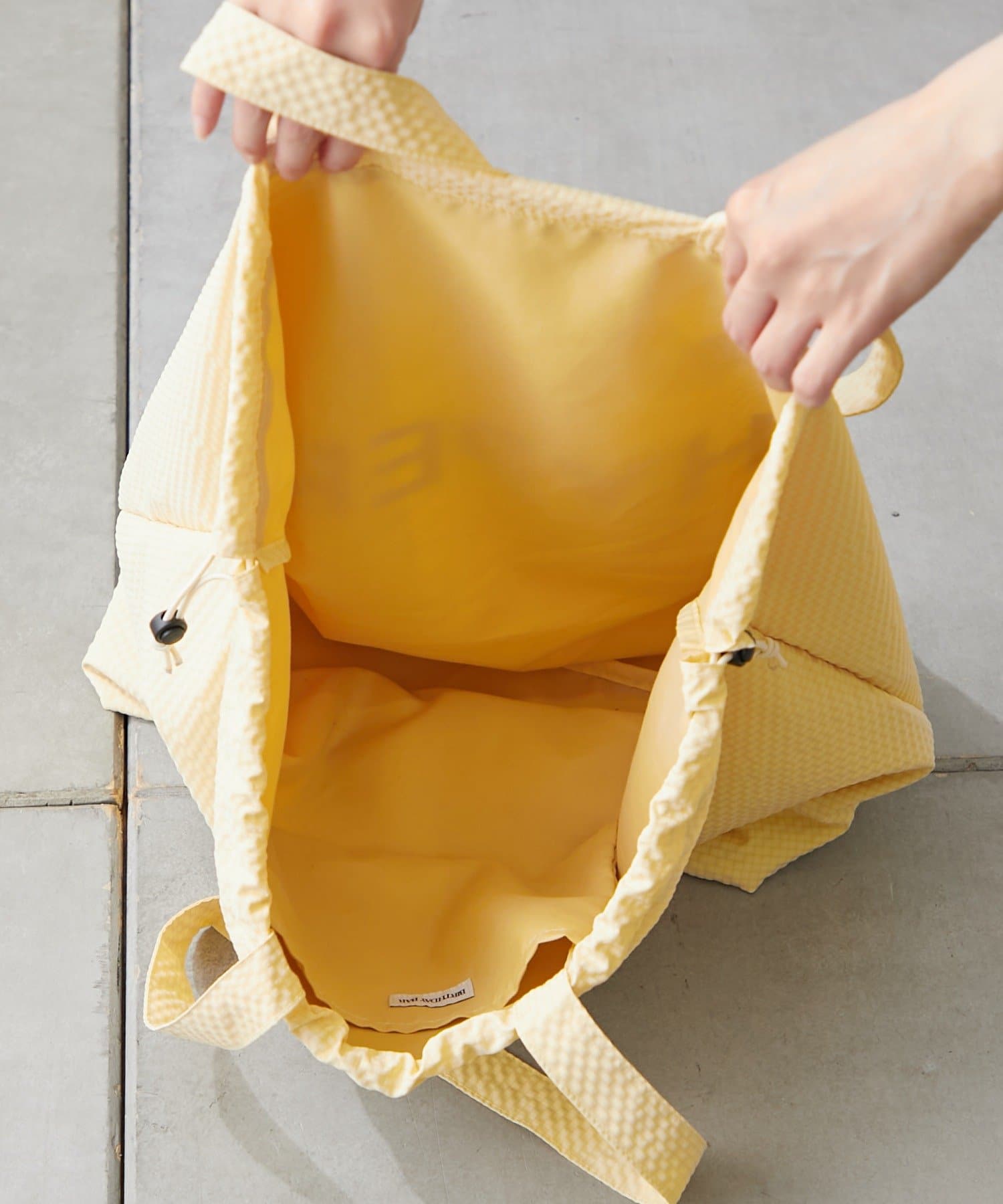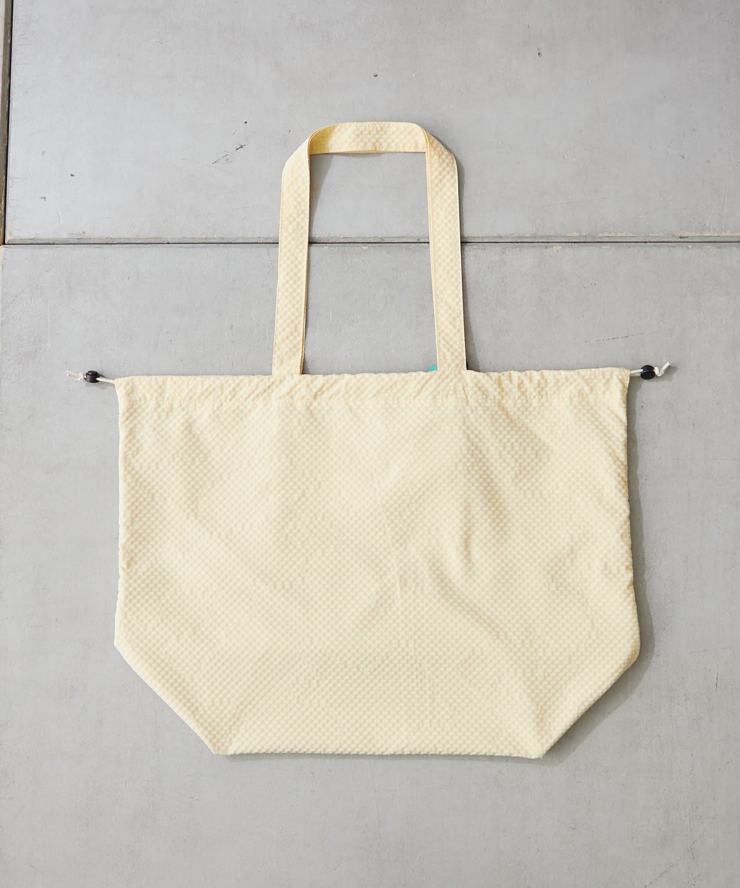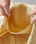 バッグの間口は巾着仕様になっており、きゅっと絞ることで中身が見えるのを防ぎ、セキュリティ面も安心。