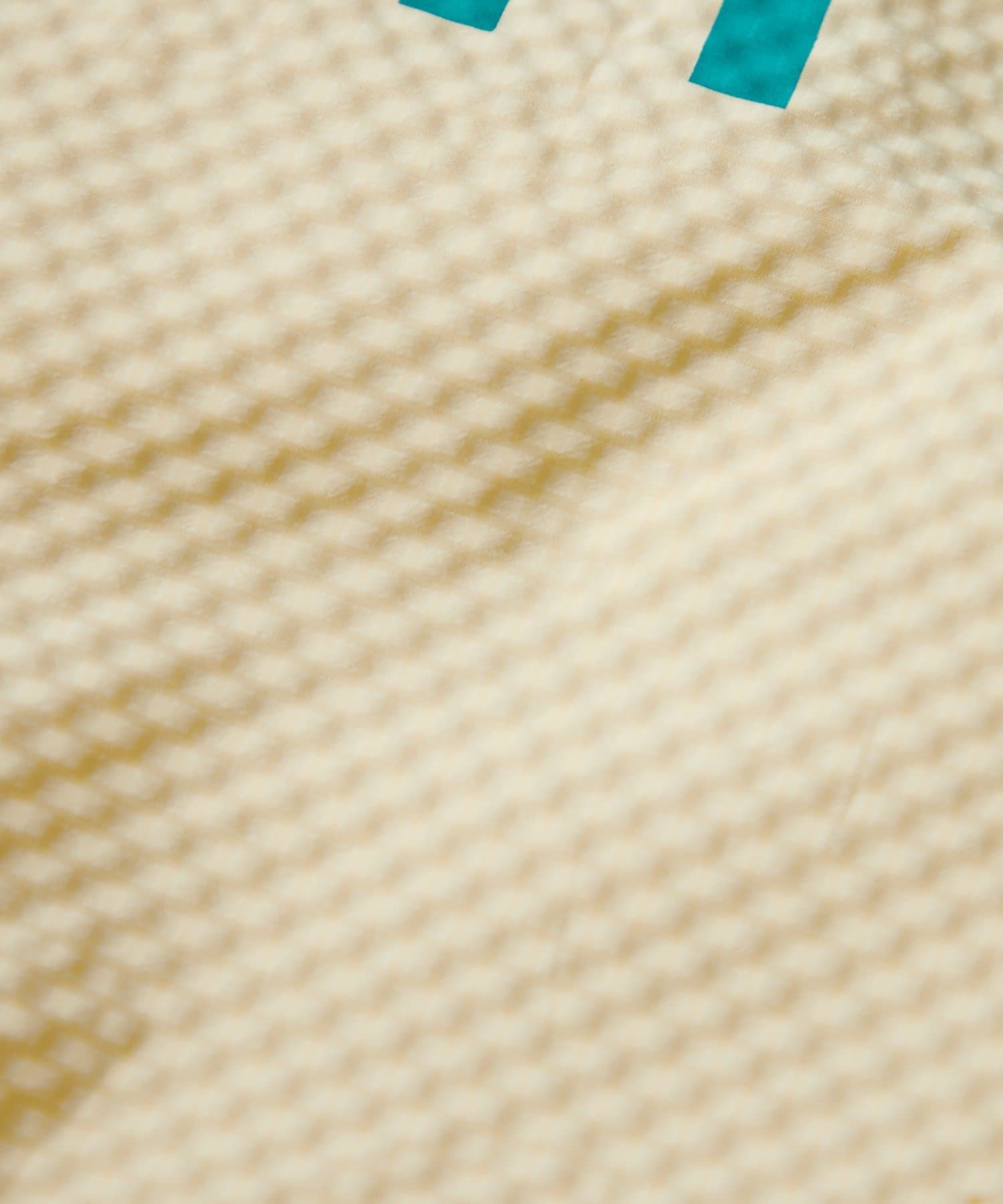 凹凸のあるワッフルライクな生地感が特徴で、軽やかなリサイクルポリエステル素材を使用。