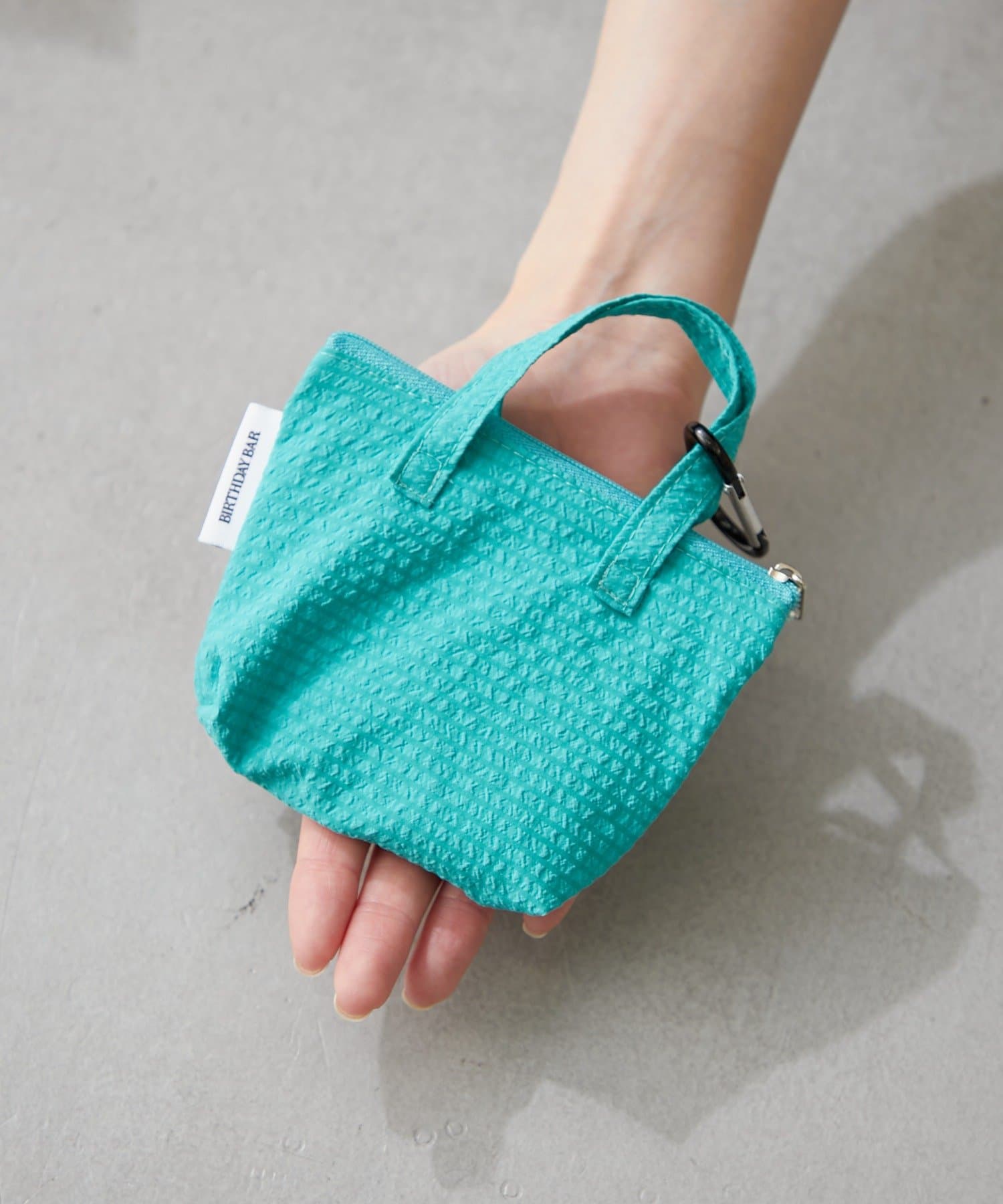カラビナ付きのバッグのロゴと同じビビッドなカラーのミニバッグも嬉しいポイント。