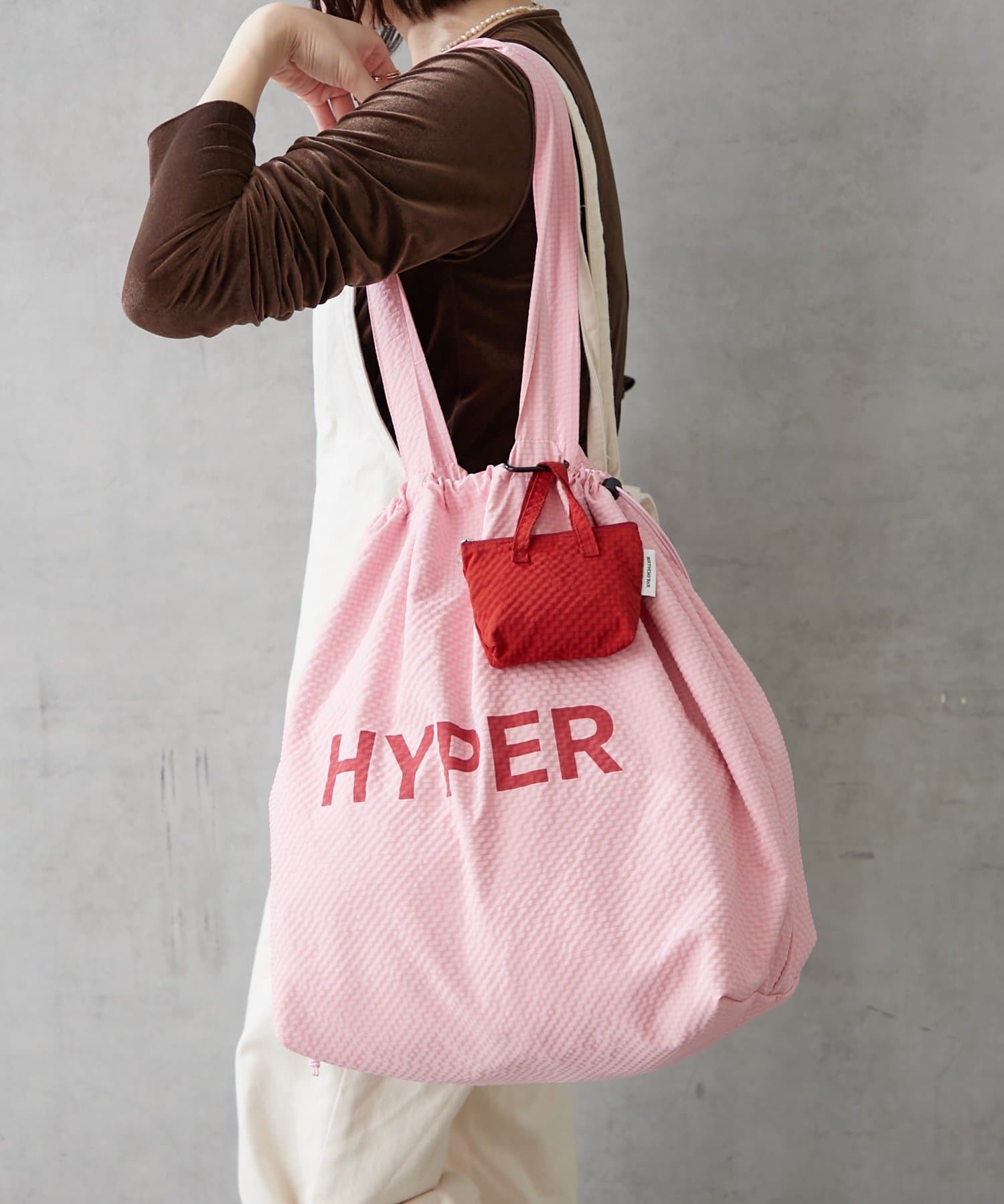 ミニバッグ付きが嬉しい!キャッチーなロゴが目を惹くビッグサイズの巾着トート