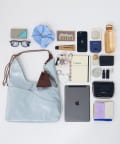 配色を効かせた付属のミニ巾着はイヤホンやリップなどの小物の収納が可能。