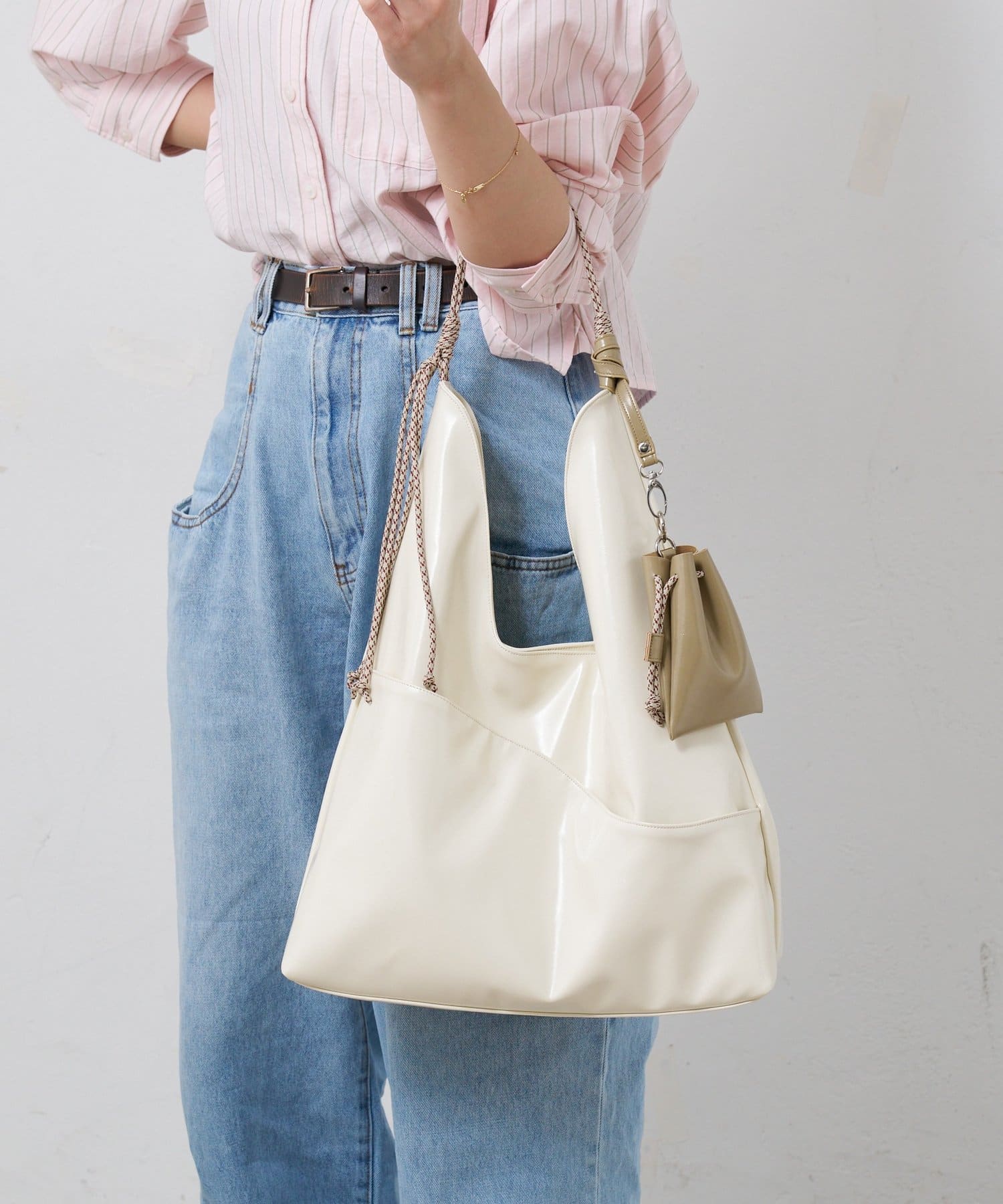 ミニ巾着ポーチ付き!春らしいニュアンスカラーが特徴のきれいめカジュアルバッグ
