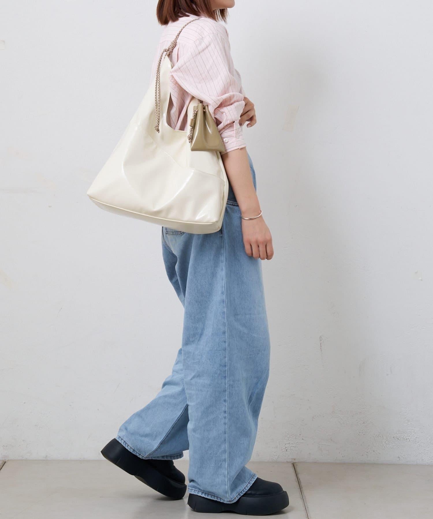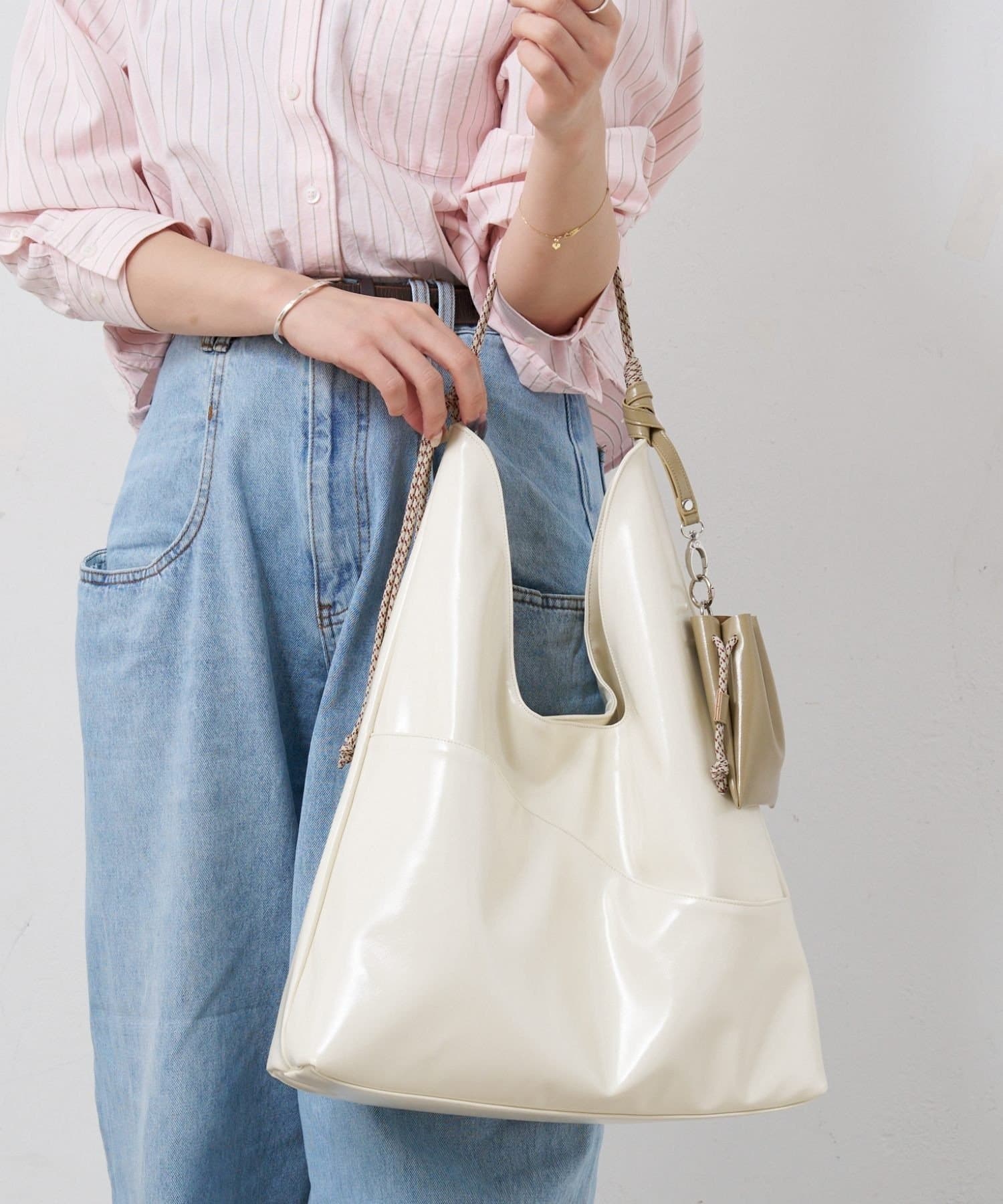柔らかでクリーンな印象を与えてくれ、白やベージュ系のワントーンコーデに合わせたスタイリングもおすすめ。