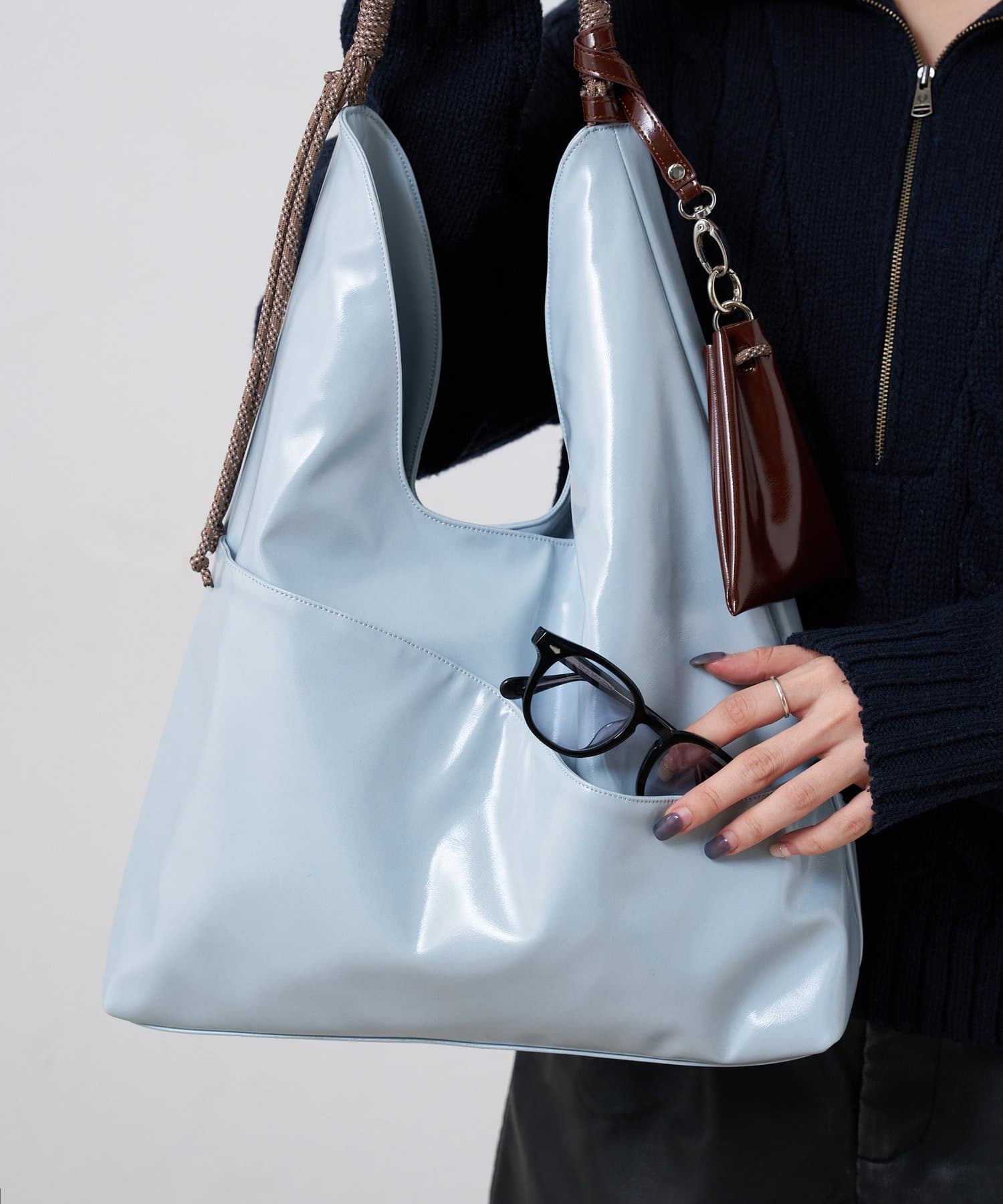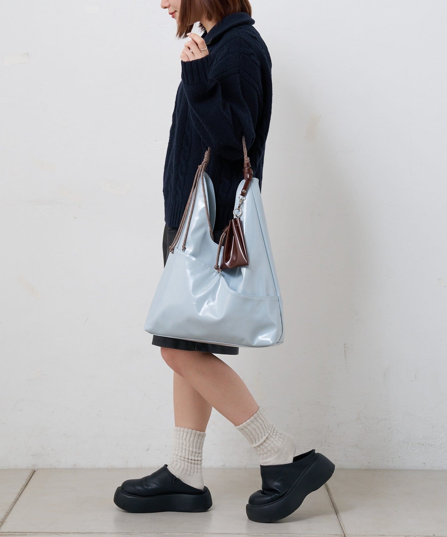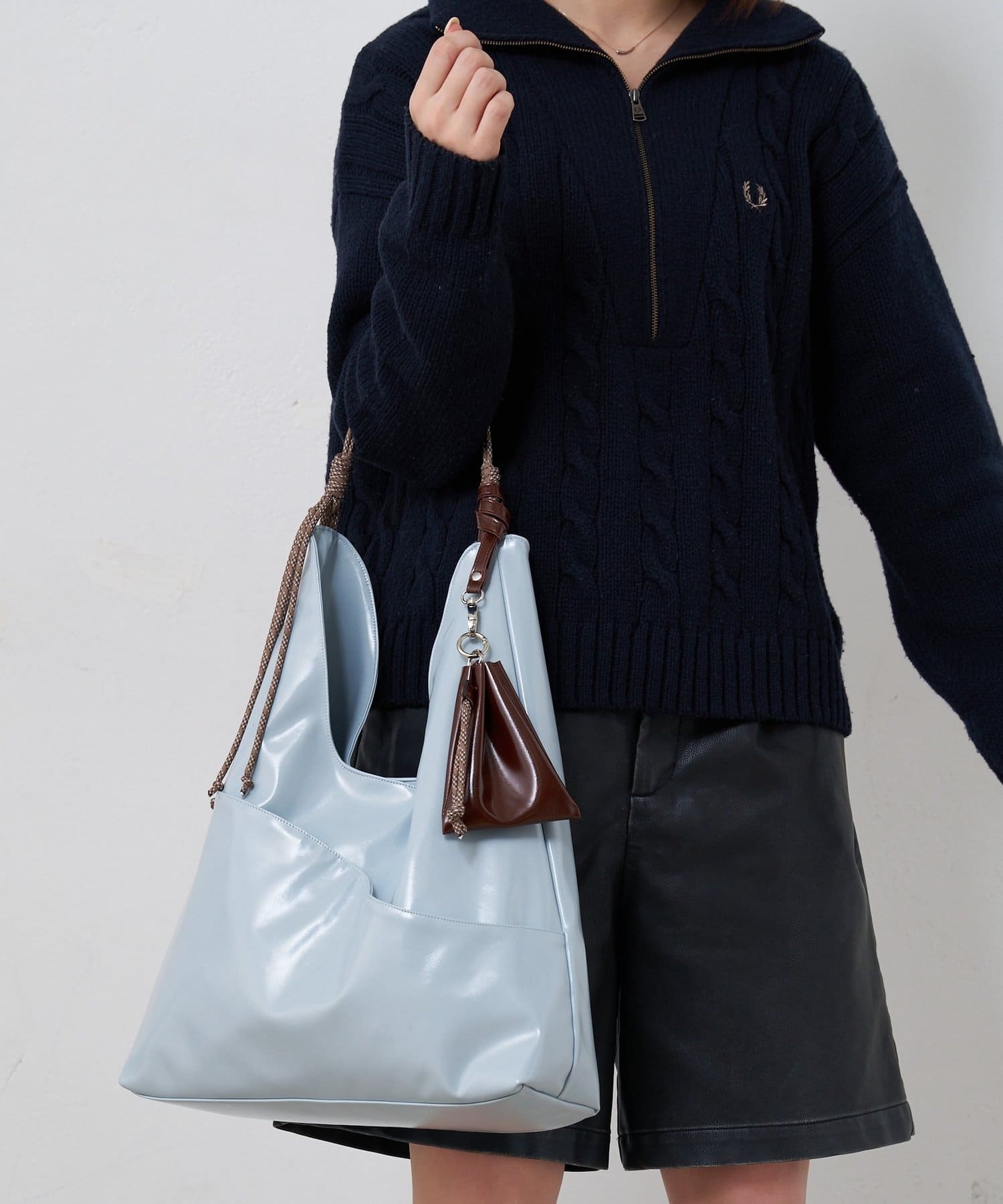 バッグ本体との異素材の組み合わせが目を引き、程よい抜け感を演出してくれます。