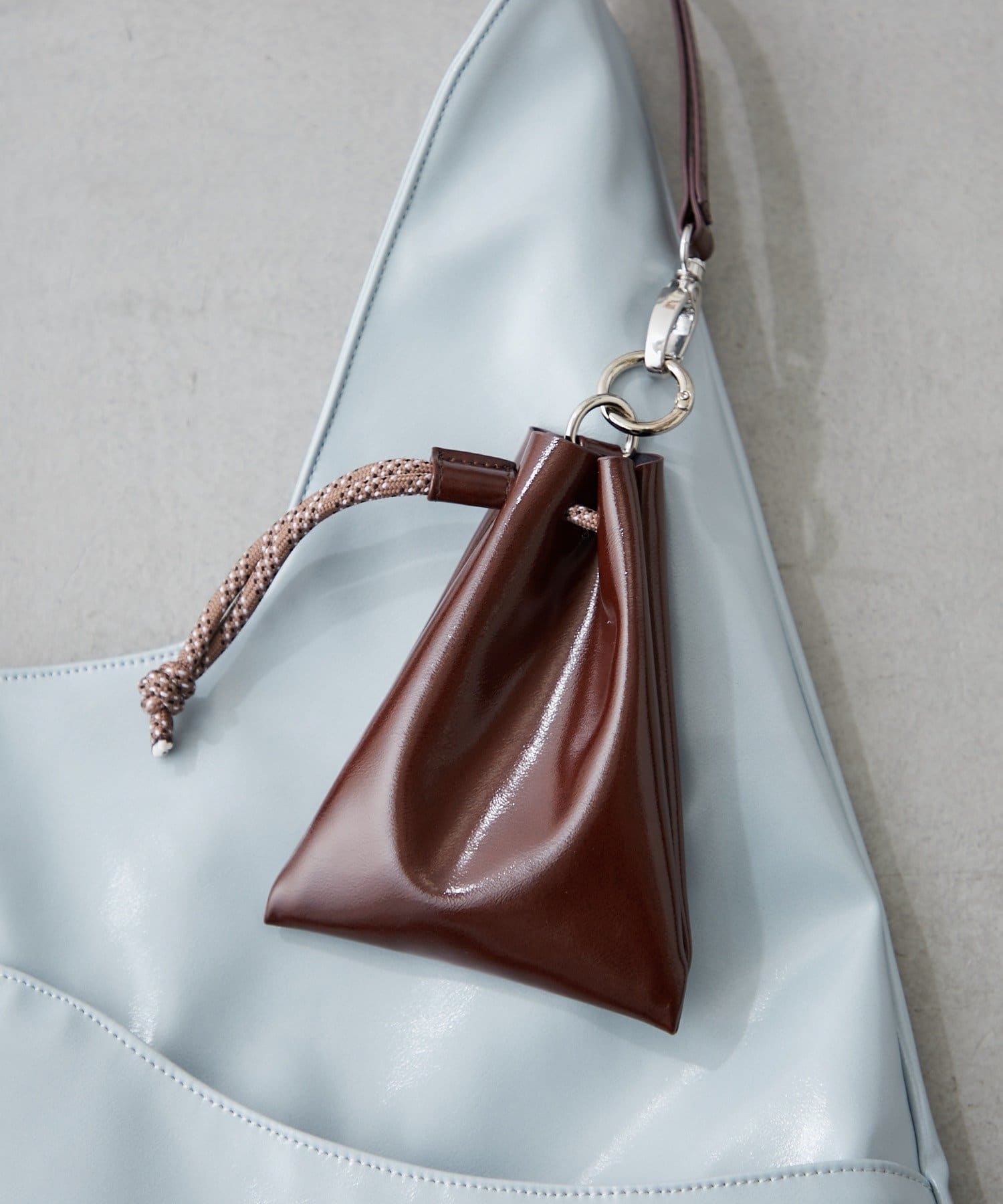 取り外し可能なので、バッグの中のDカンに巾着を付けたり、巾着単体で使ったりするのも◎