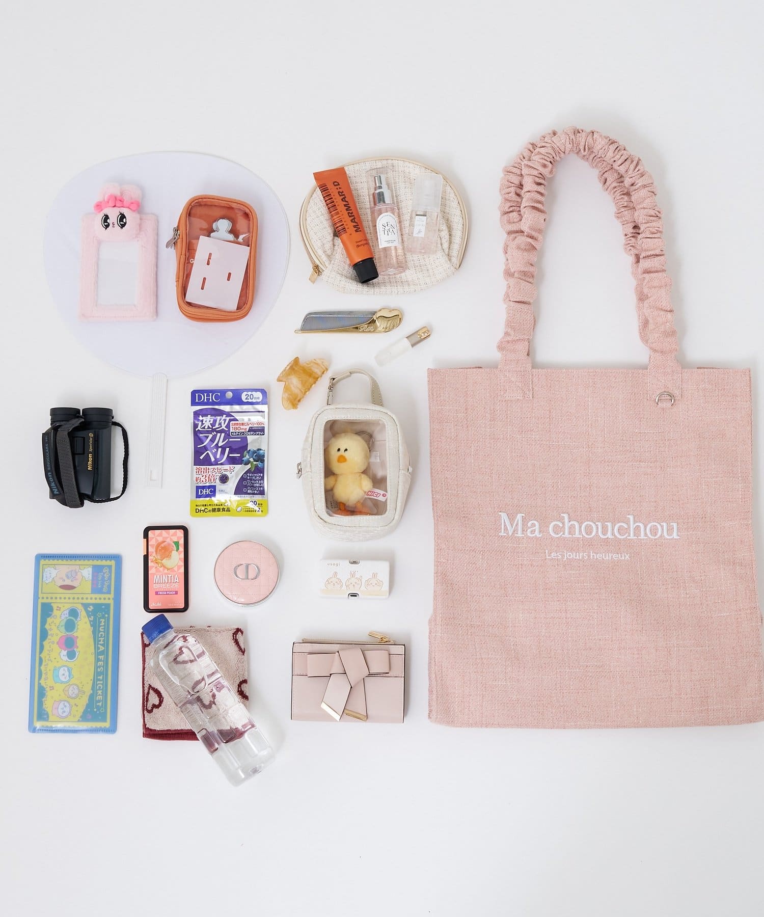 たっぷり収納なので、双眼鏡やぬいぐるみ、アクリルスタンドなど、荷物が多かったり、