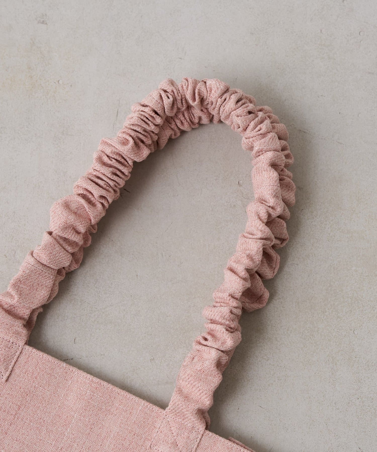 くしゅっとした持ち手のギャザーハンドルのふんわりとしたボリューム感がアクセントになっており、