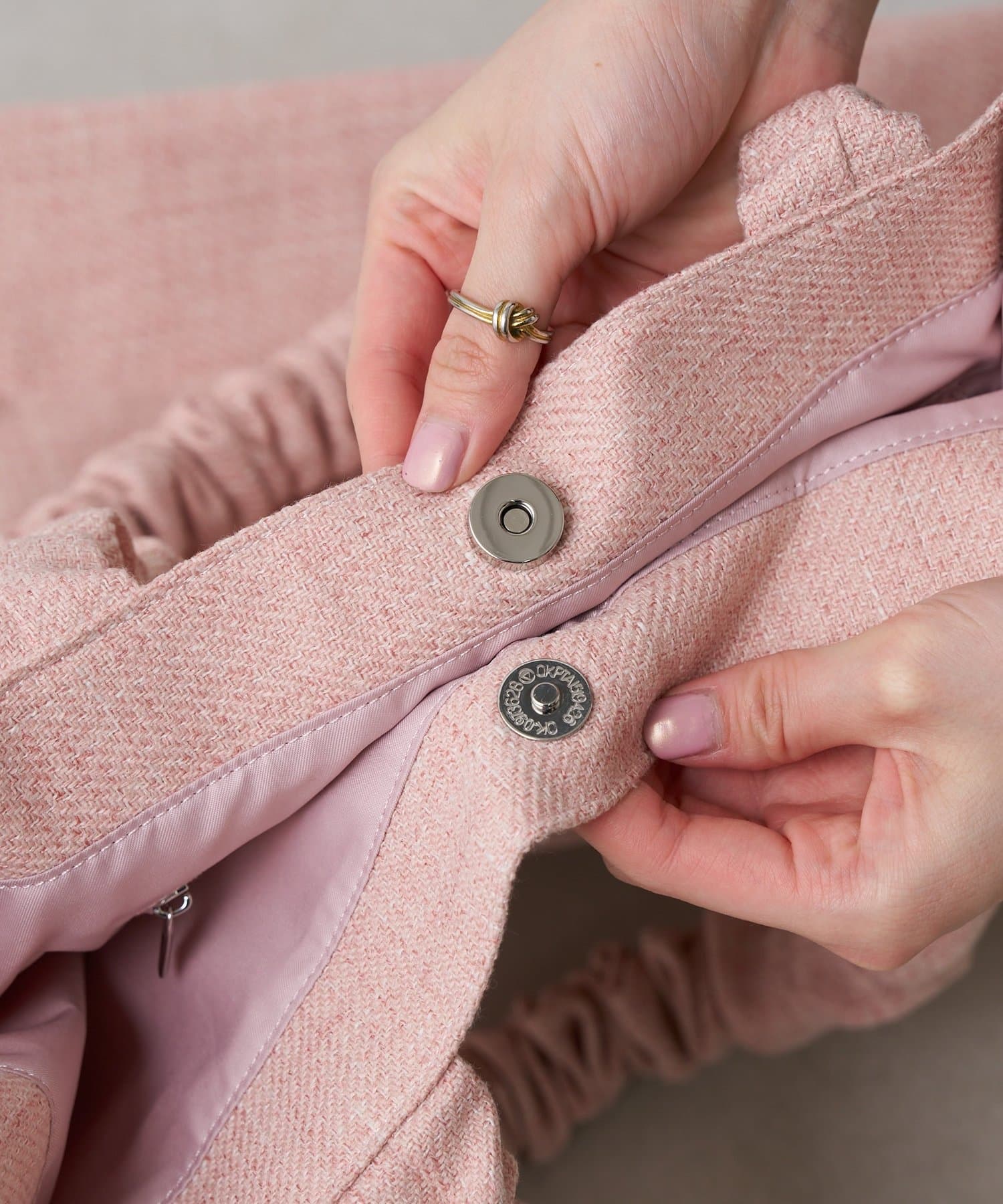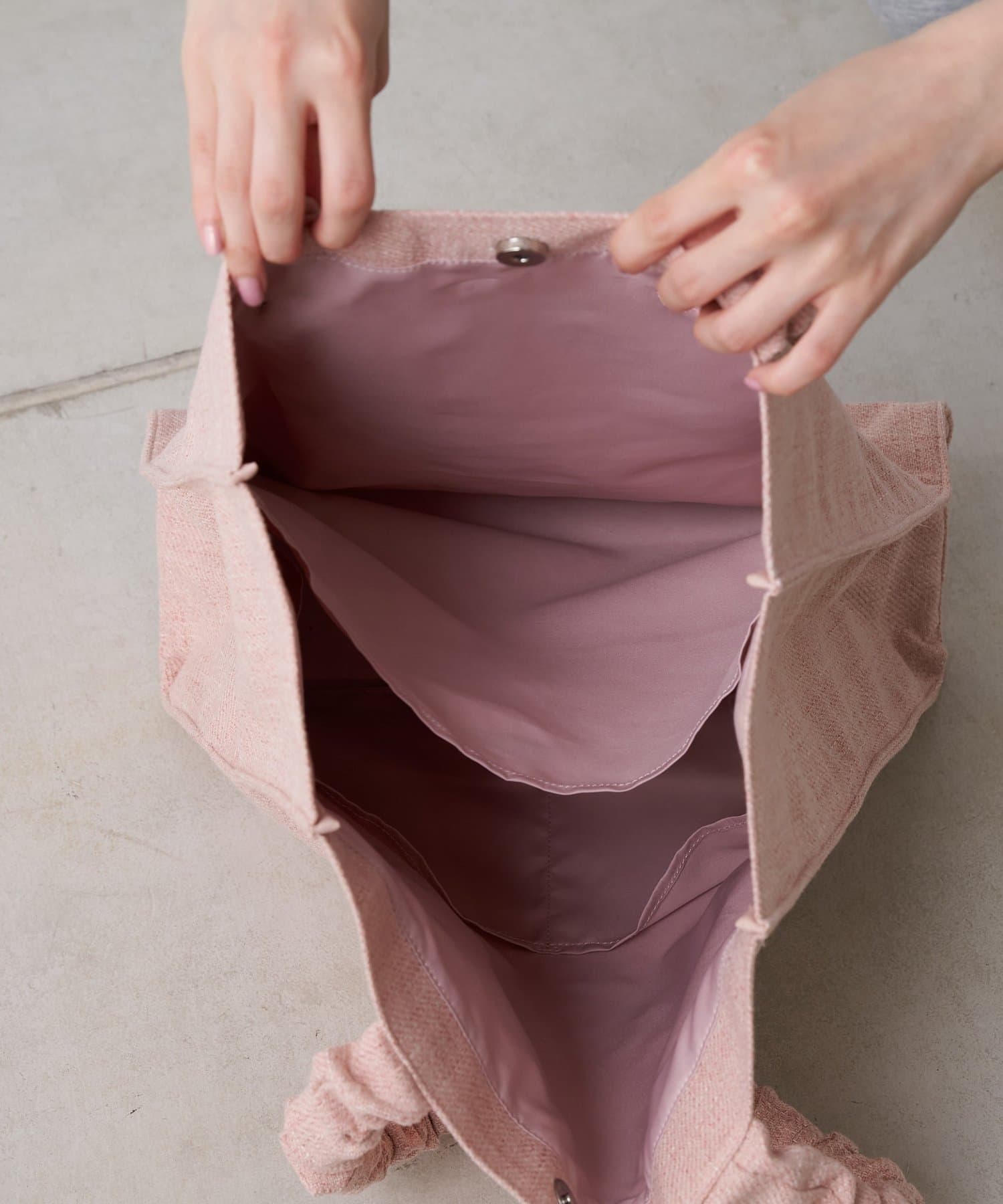 落ち着いたピンクカラーは大人の女性でも持ちやすく、どんなコーデでも合わせやすい色合いに。