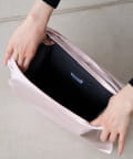 イヤホンやリップなどの小物の収納が可能で、バッグとおそろいのドットの裏地もポイントです。