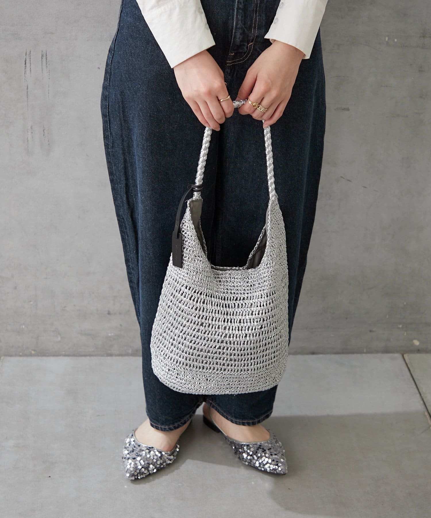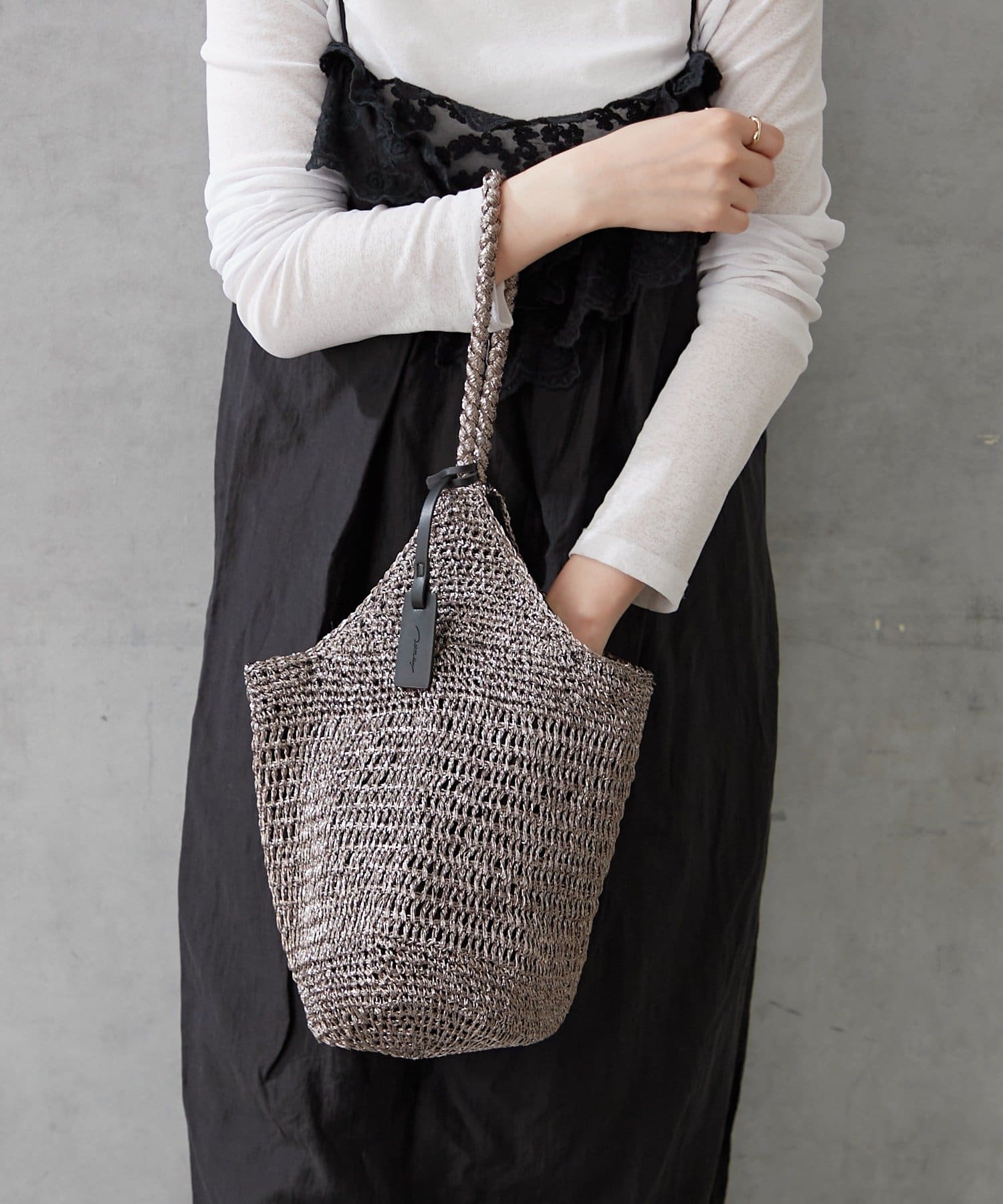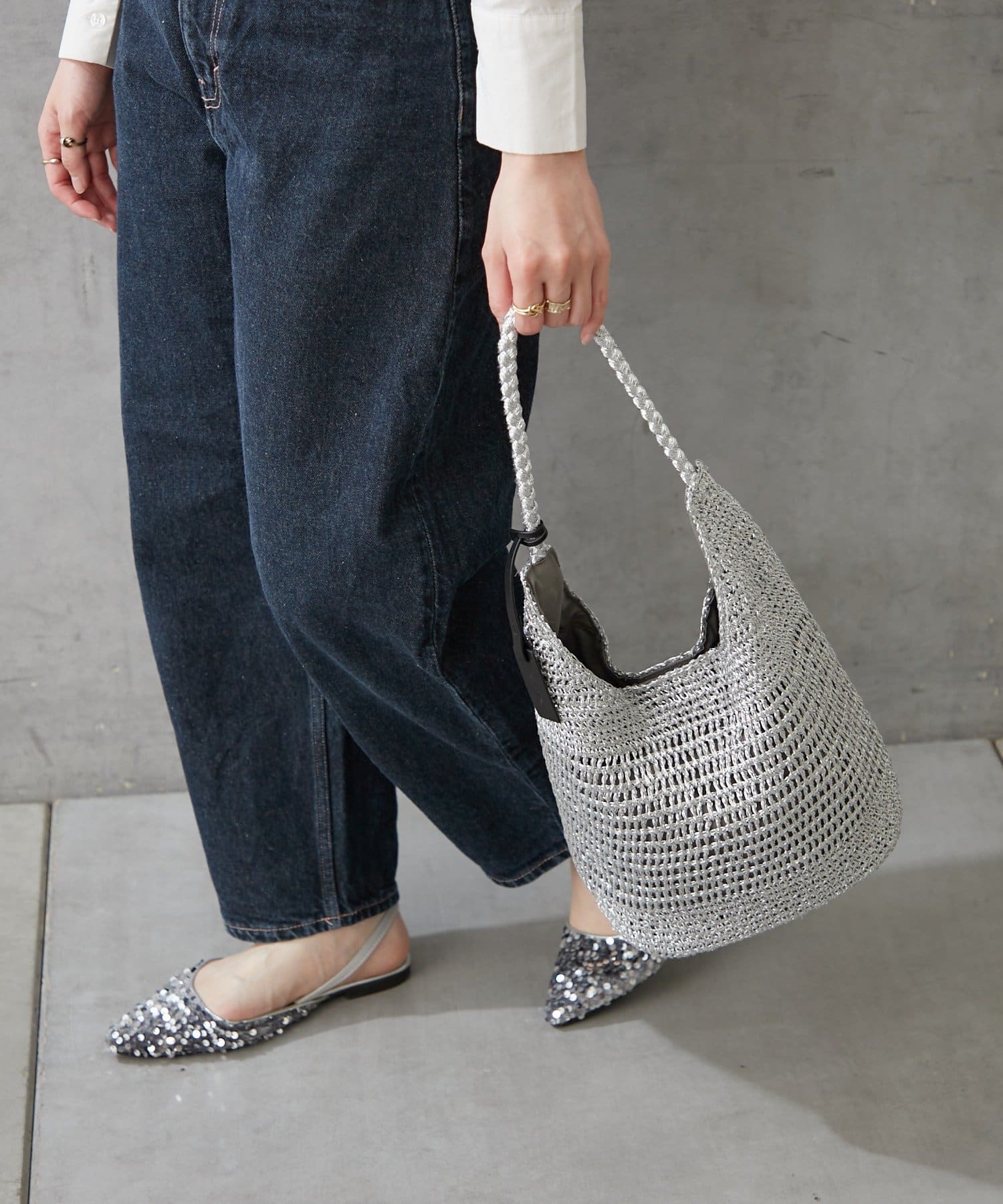メタリックに輝くコードを丁寧に編み込んだ、上品さとクラフト感を兼ね備えたハンドルバッグです。